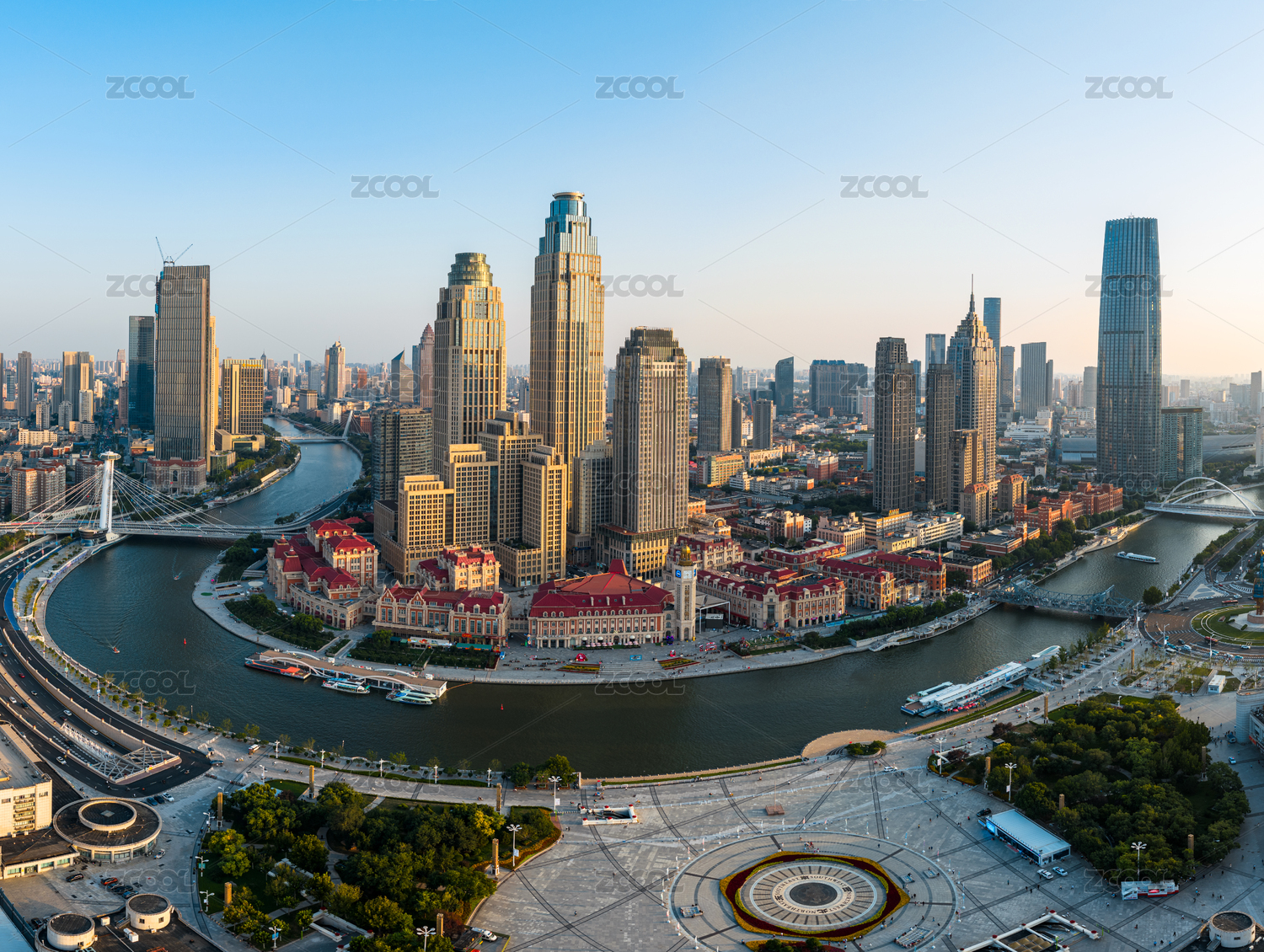 中国天津海河津湾广场航拍图
