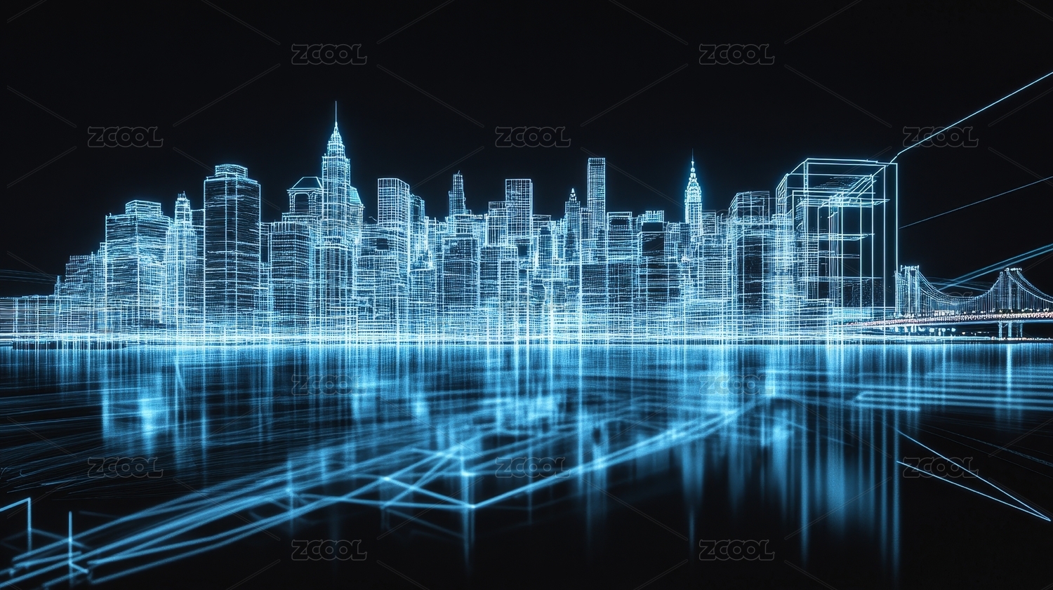 运输,全息,电子,扫描,城市,建筑,蓝色,现代,帆船,航行
