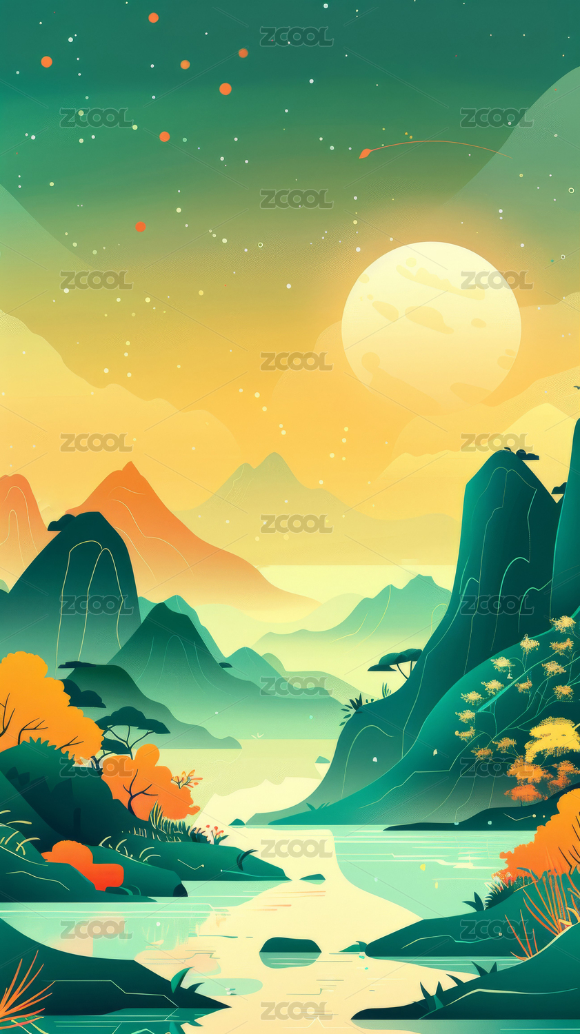 山海经抽象场景插画
