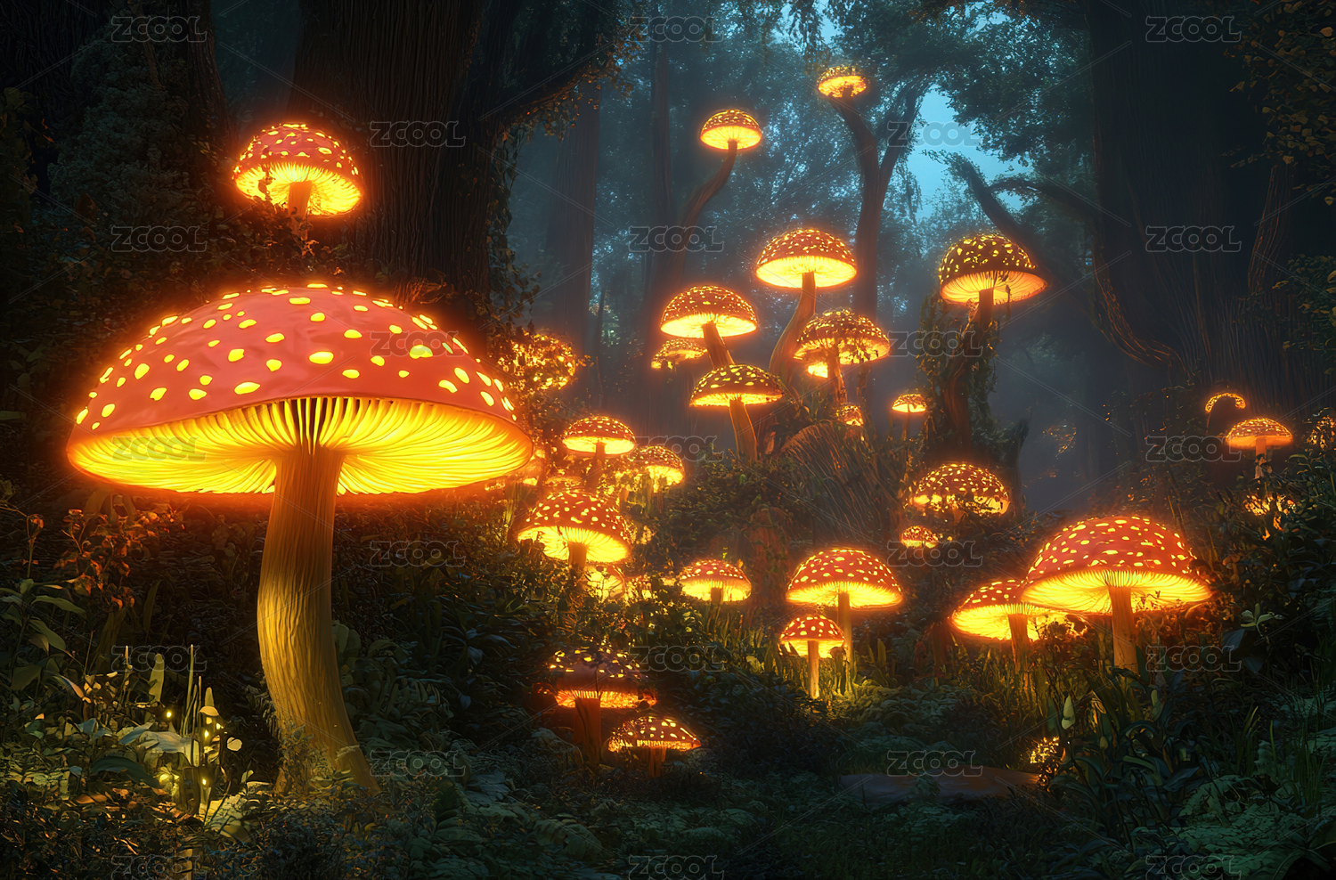 户外,森林,AI数字艺术,自然美,植物,生长,自然,真菌,蘑菇,多色的