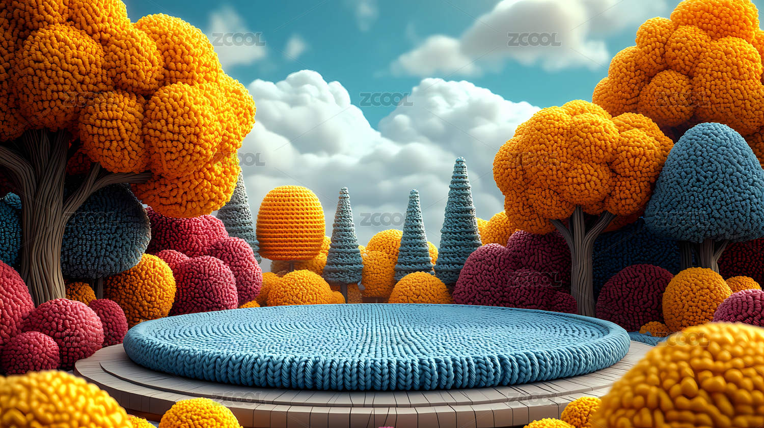 3D,毛线,质感,促销,展台,3D插画,舞台,背景,简洁,建筑