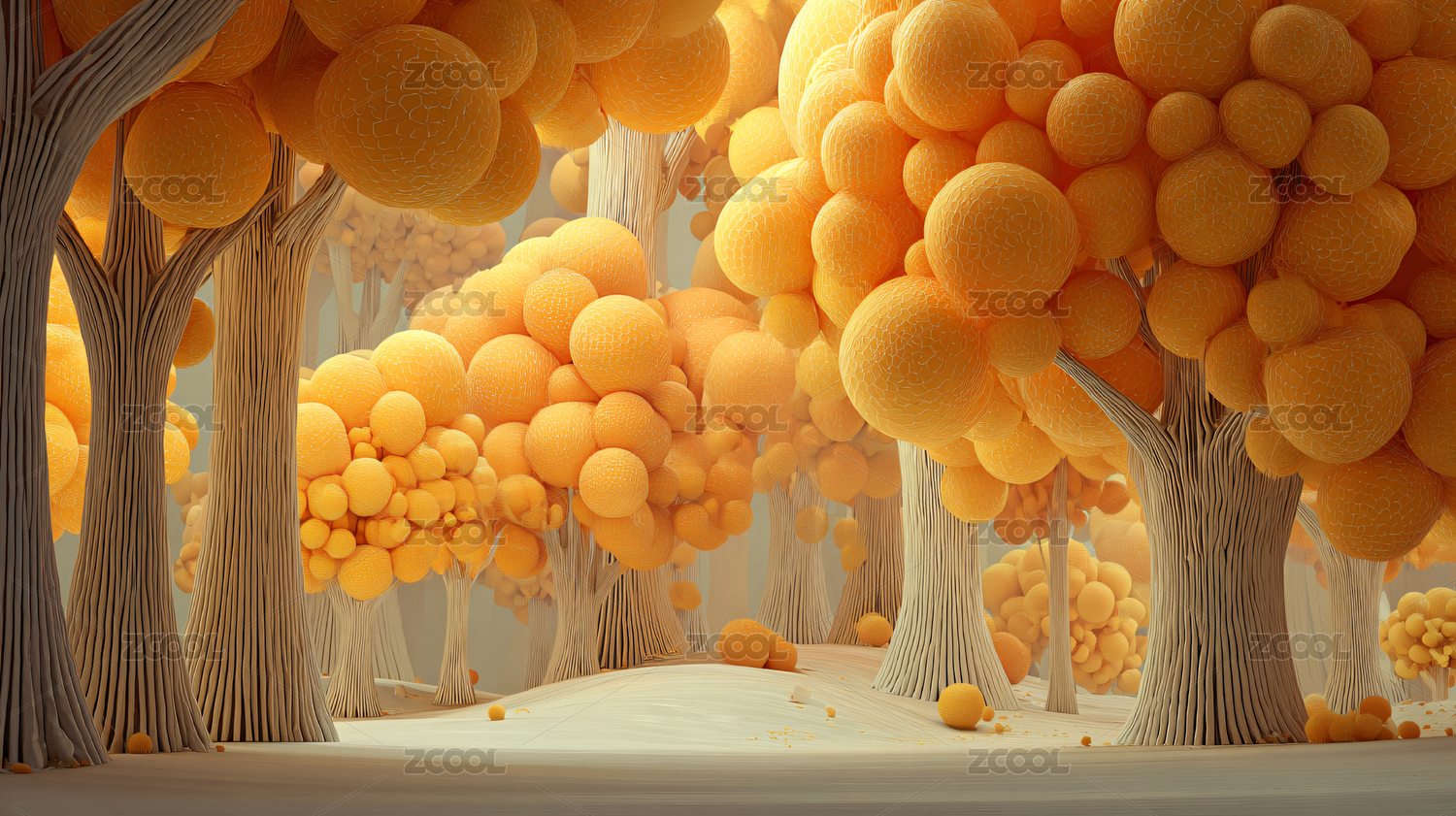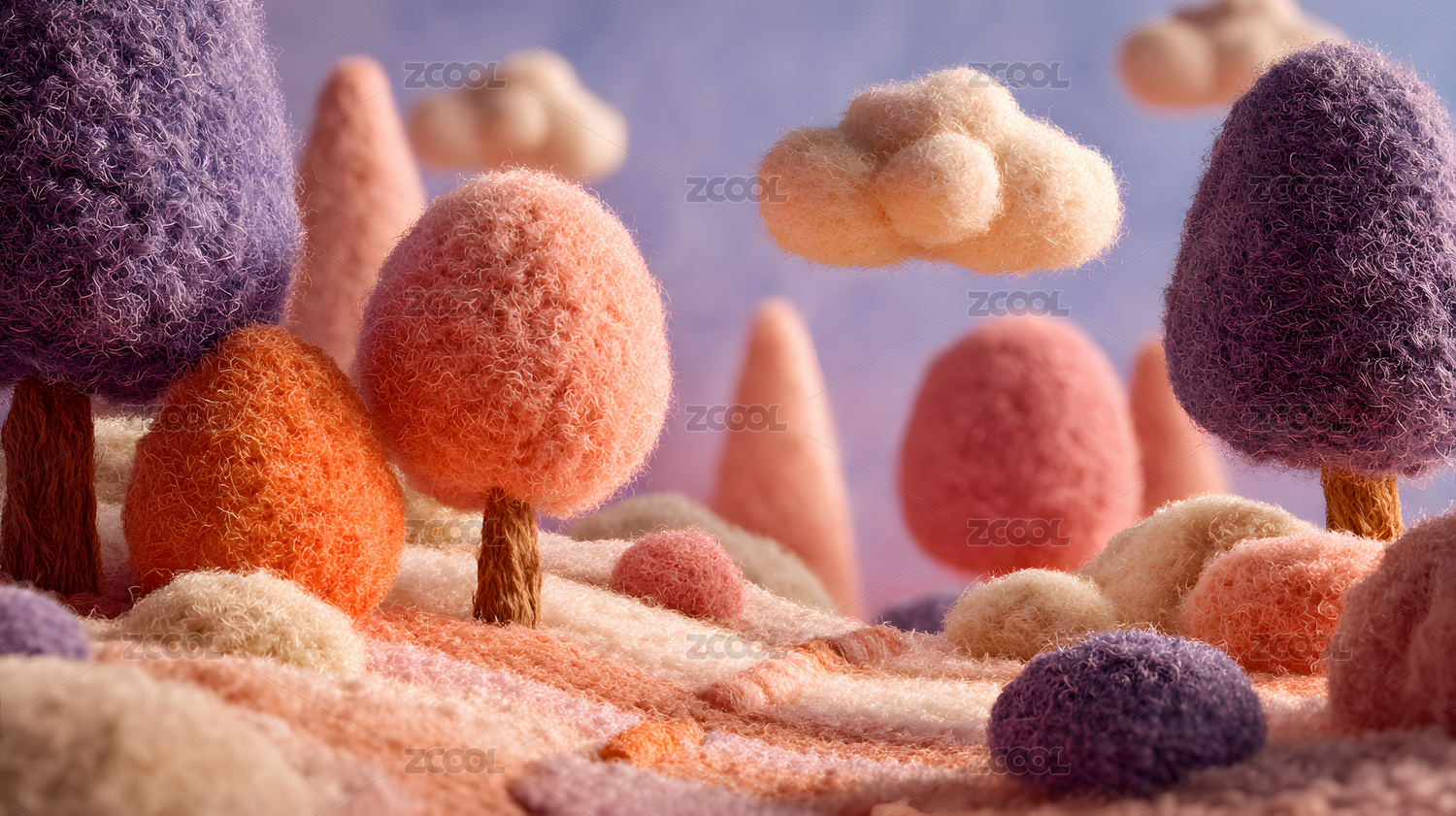 彩色植物花朵展台舞台羊毛毡3D卡通插画