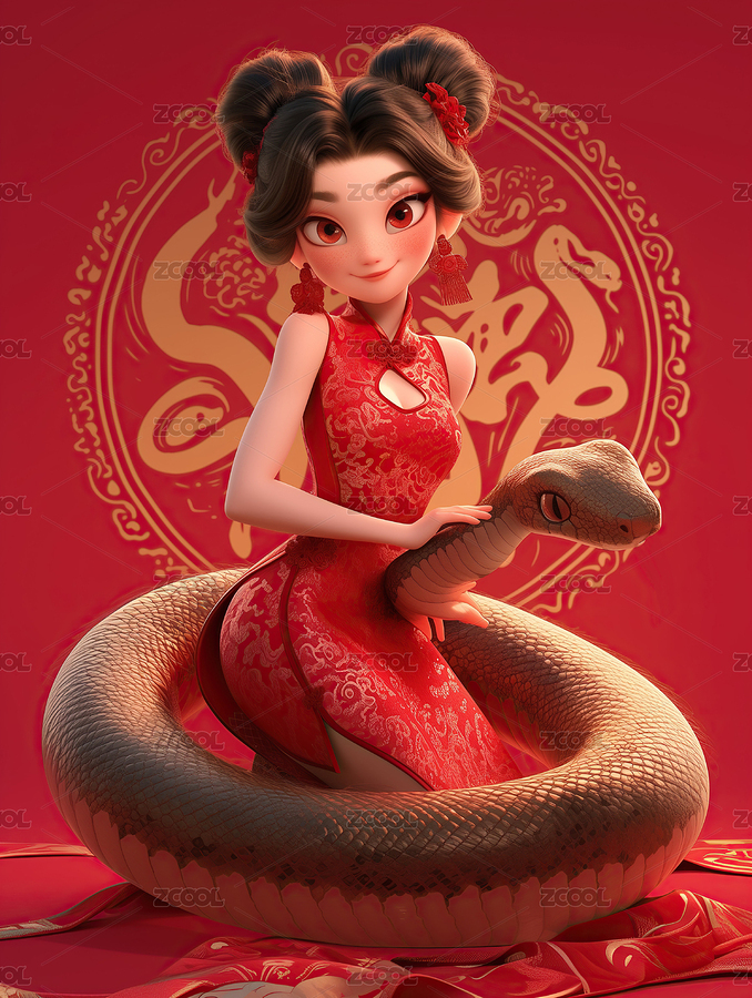 新年小女孩与蛇