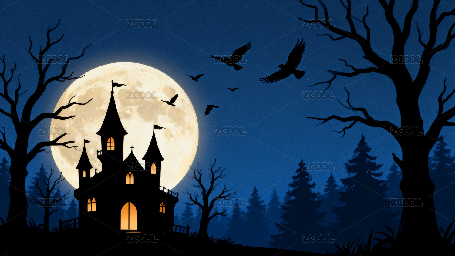 万圣节海报背景宣传图片南瓜灯城堡黑暗森林