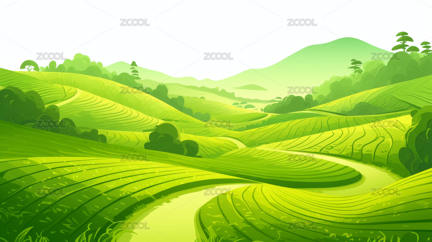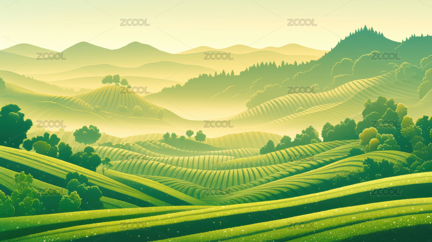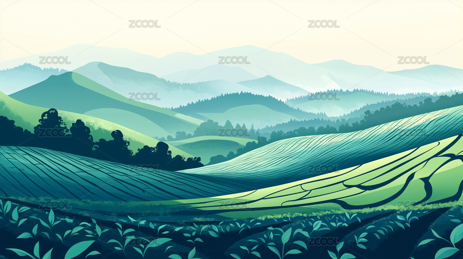 茶,茶园,茶山,插画,绿色,农业,田地,风景,植物,春天