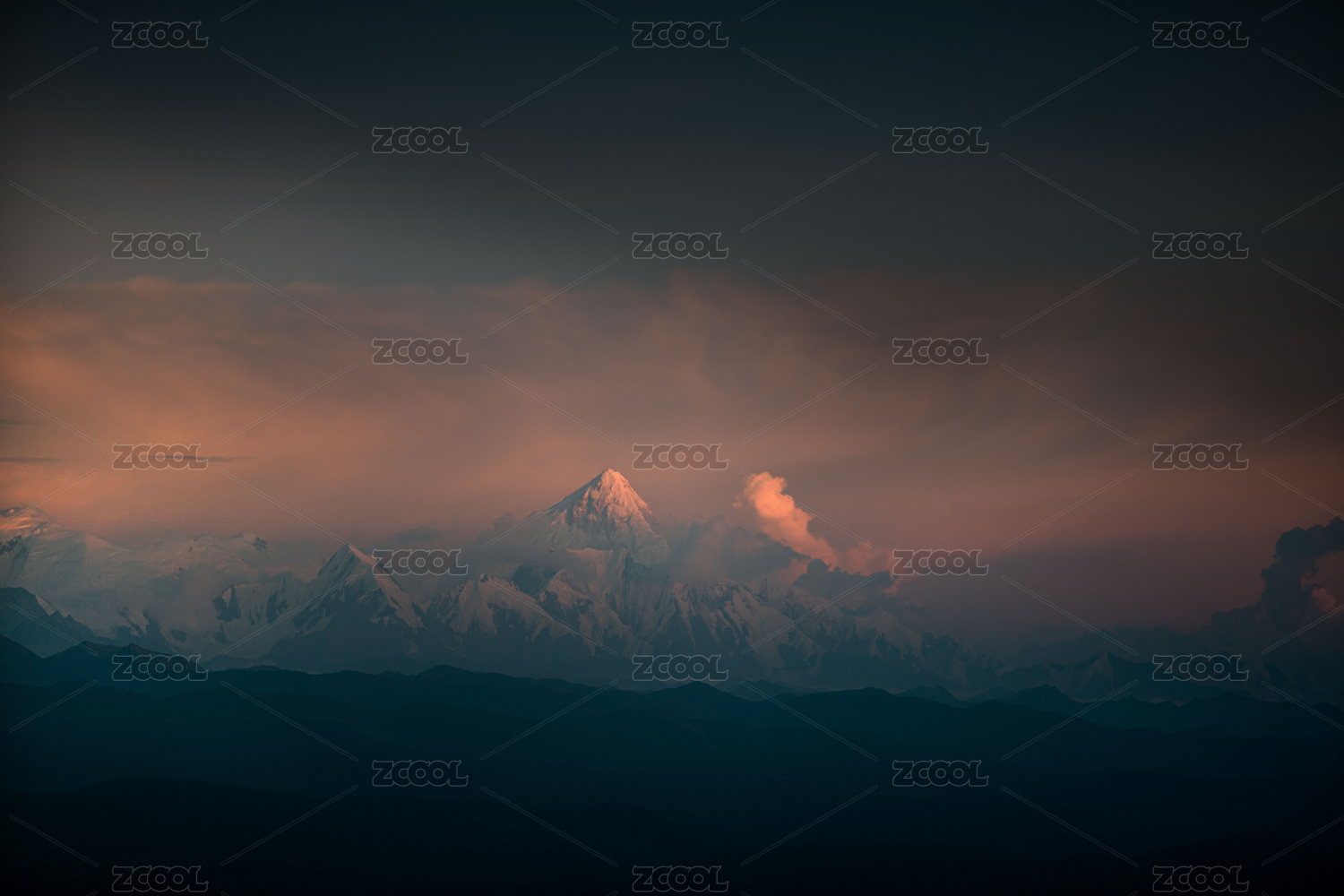 中国新疆天山山脉东段最高峰博格达峰霞光