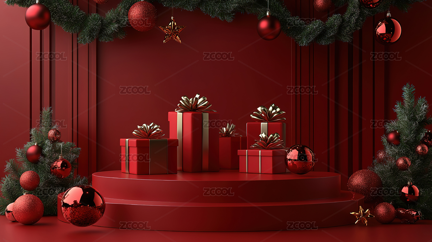 圣诞,节日,礼物,圣诞树,雪花,红色,舞台,展台,水晶球,气球