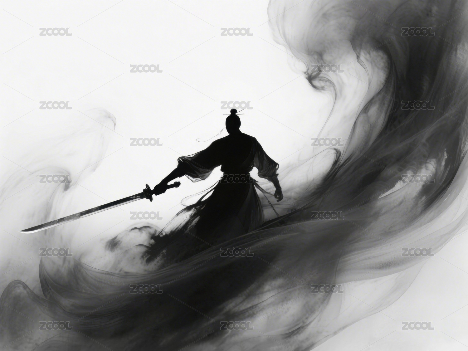 剪影,黑色,轮廓,水墨,武打,侠客,武侠,决战,战斗,战场