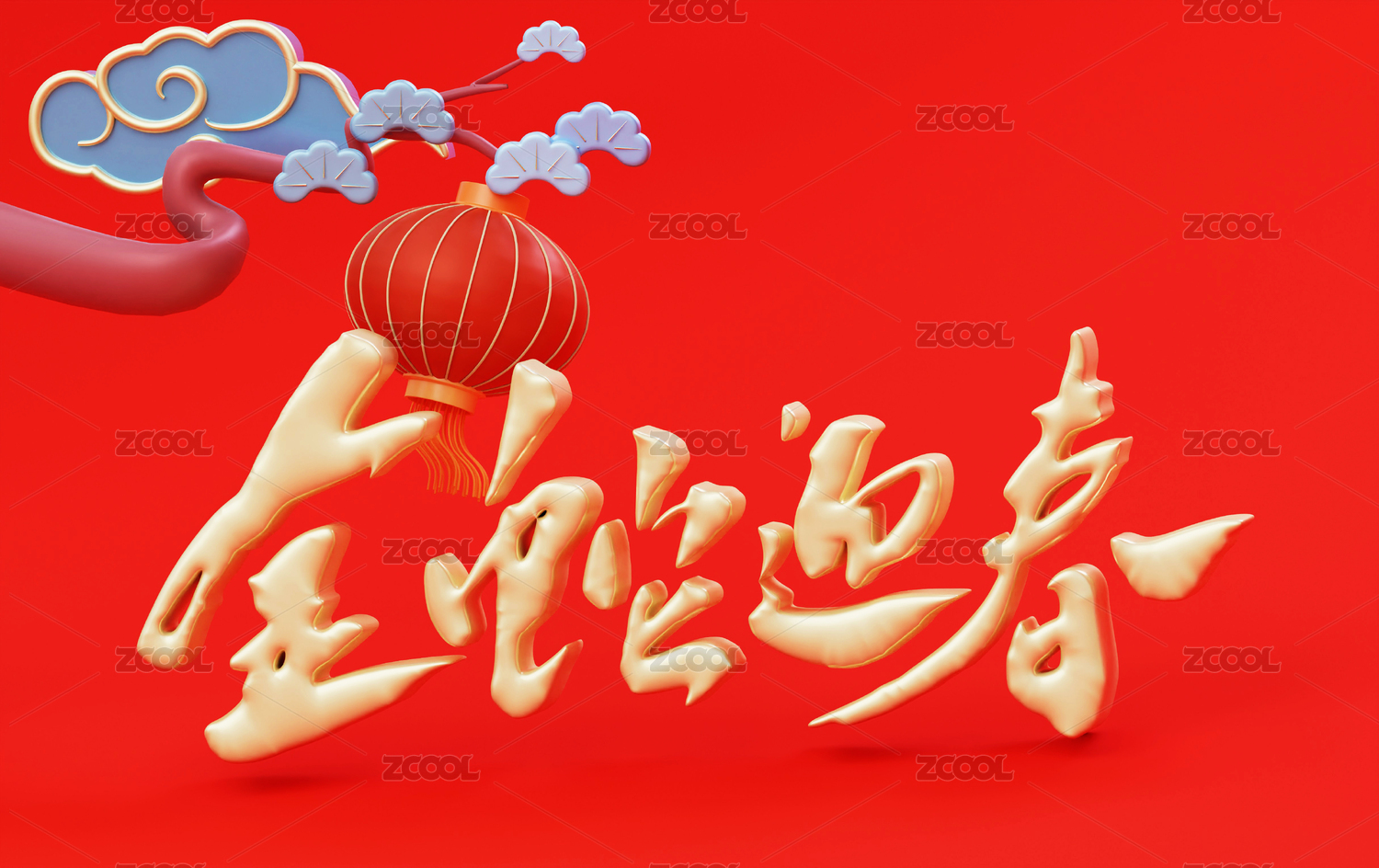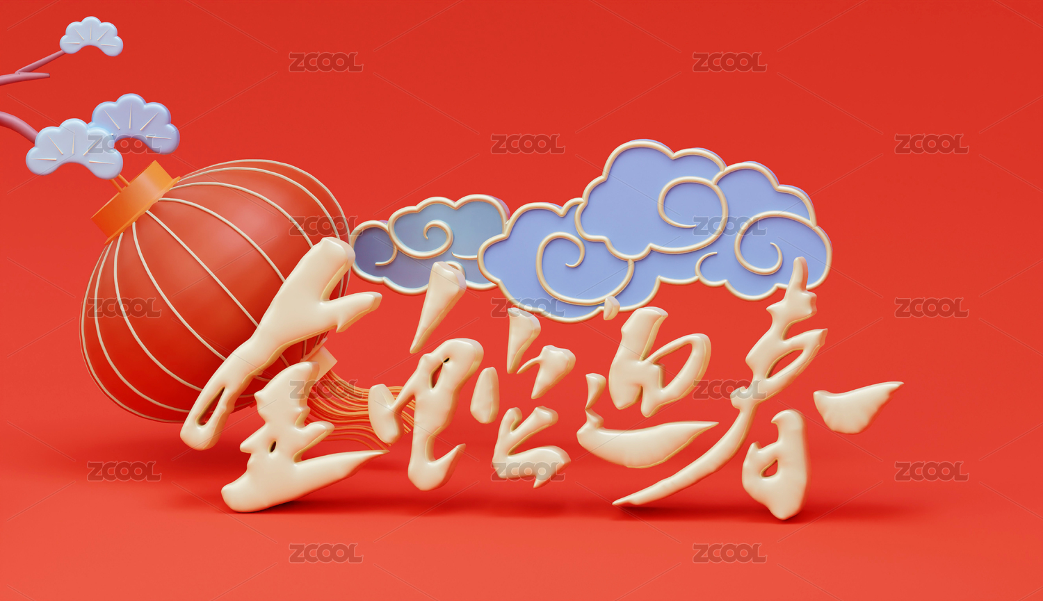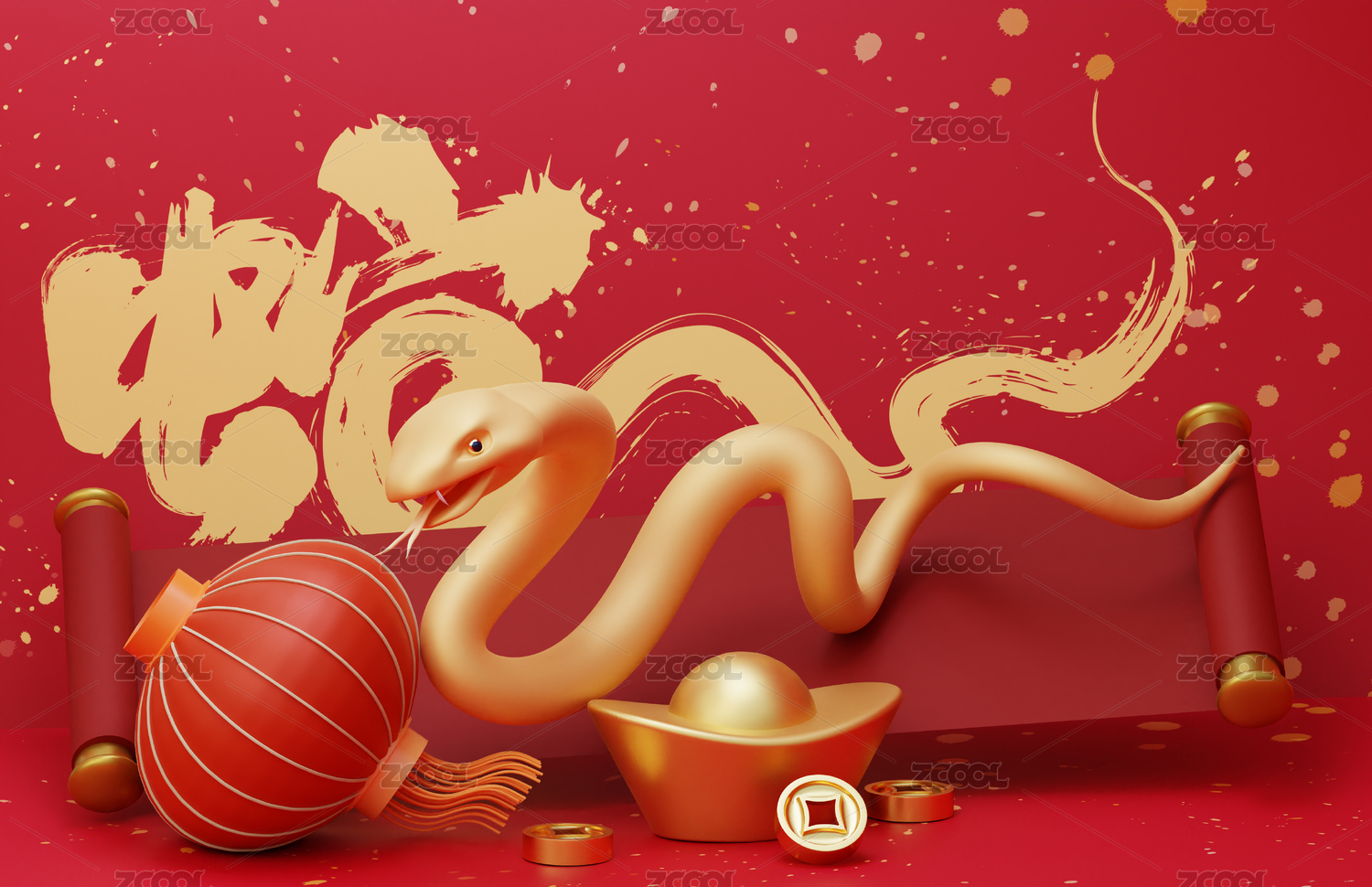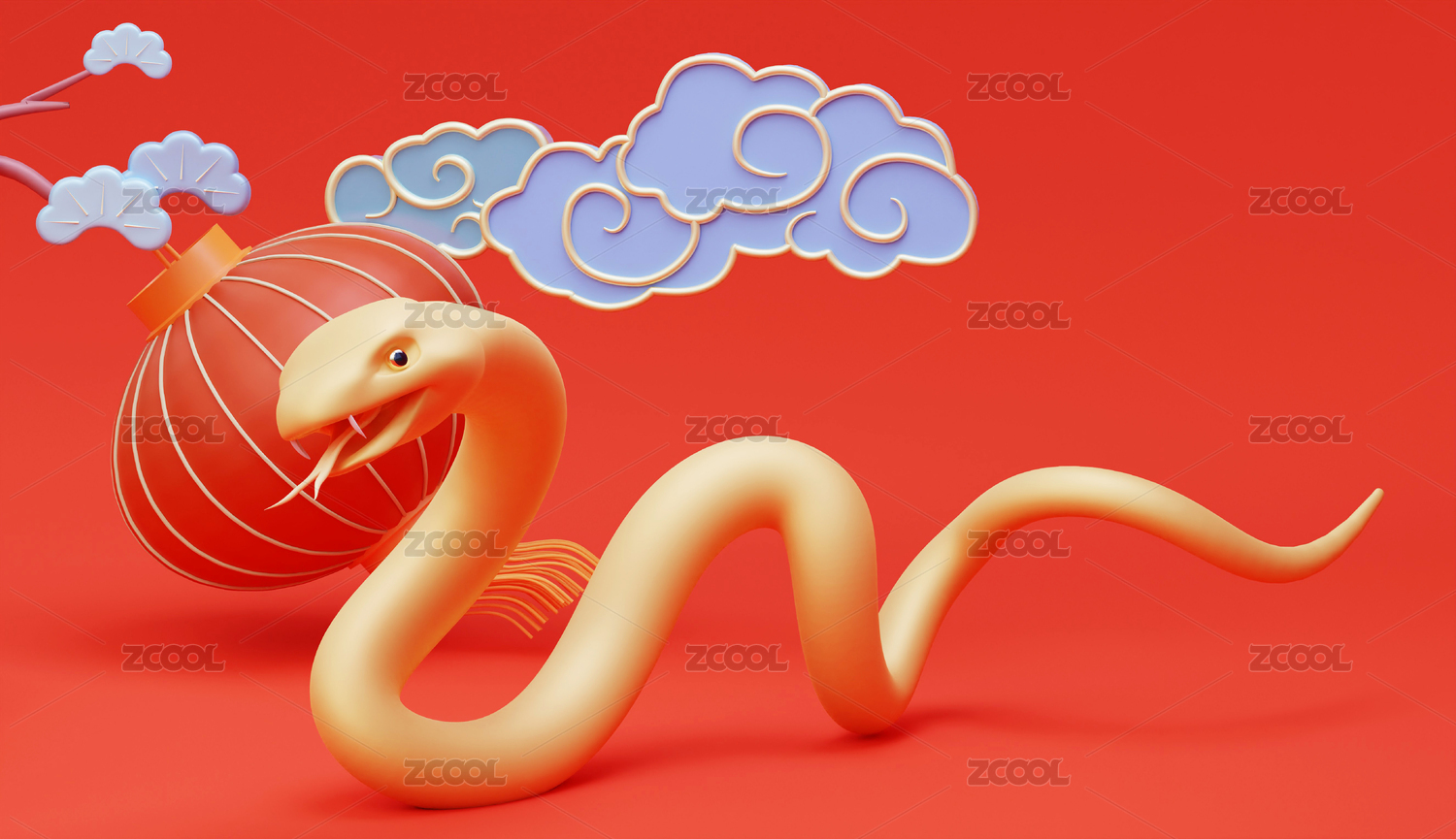 3D设计中国风春节节日蛇年年会庆典灯笼春