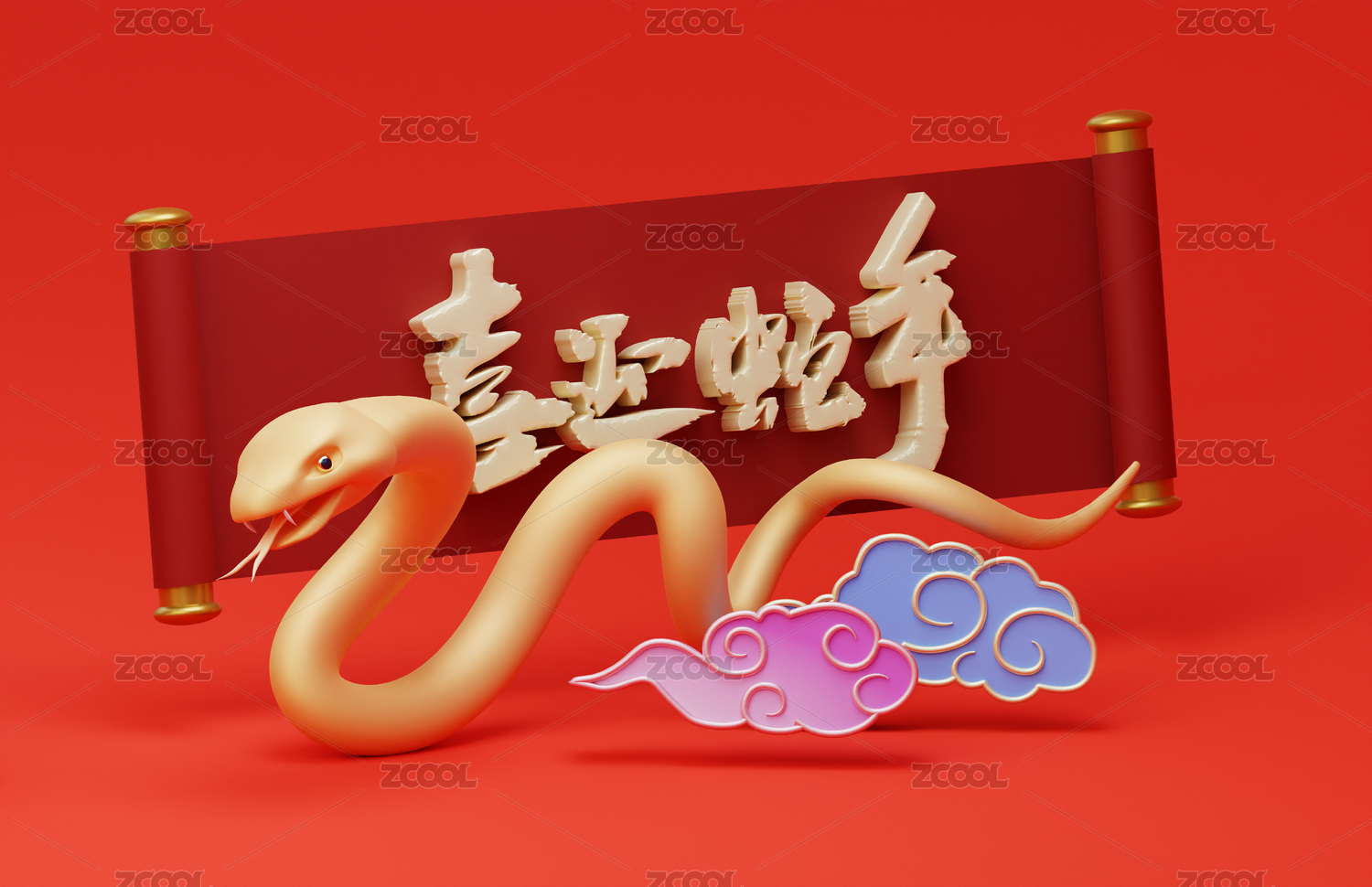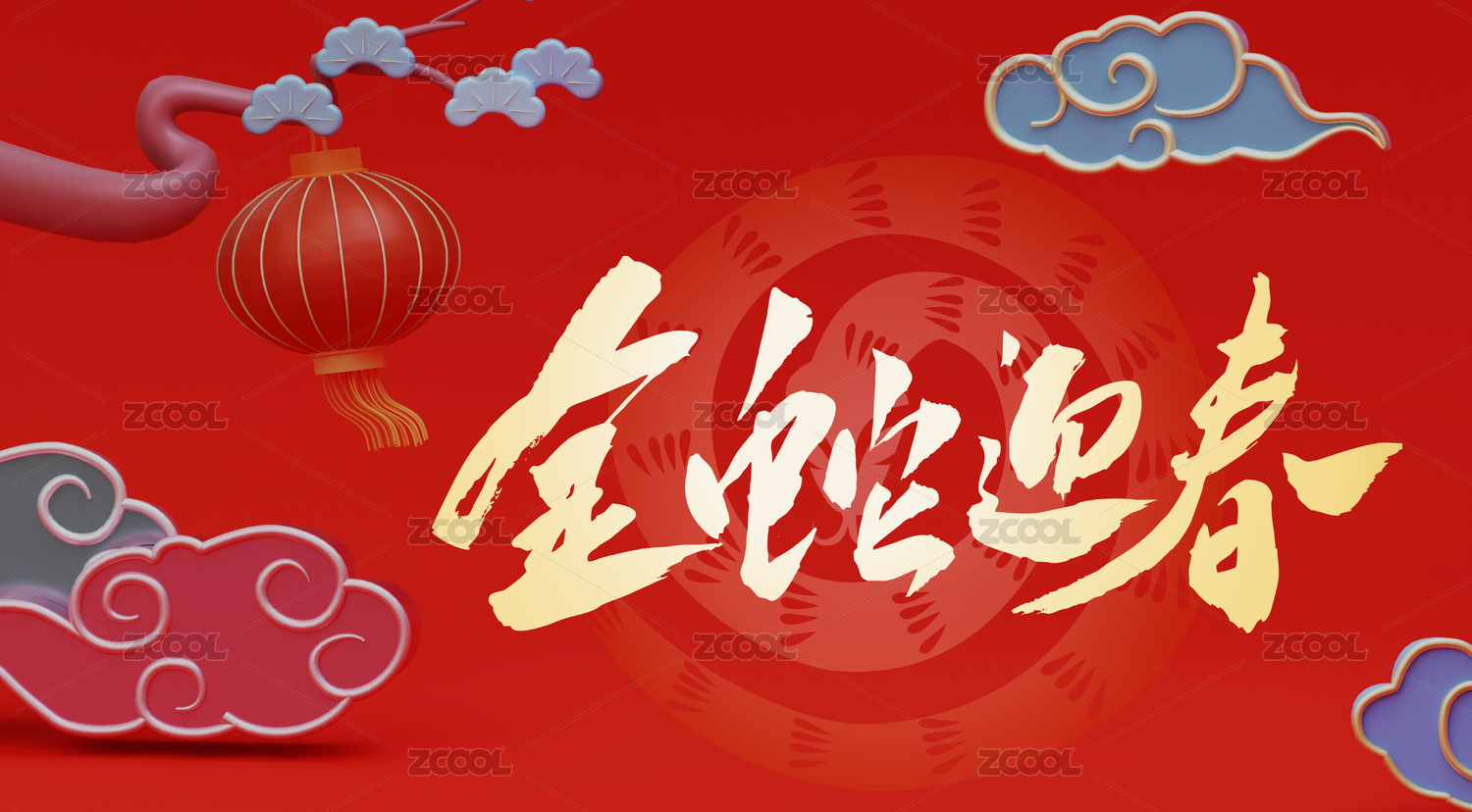 中国春节蛇年春晚舞台庆祝海报3D设计