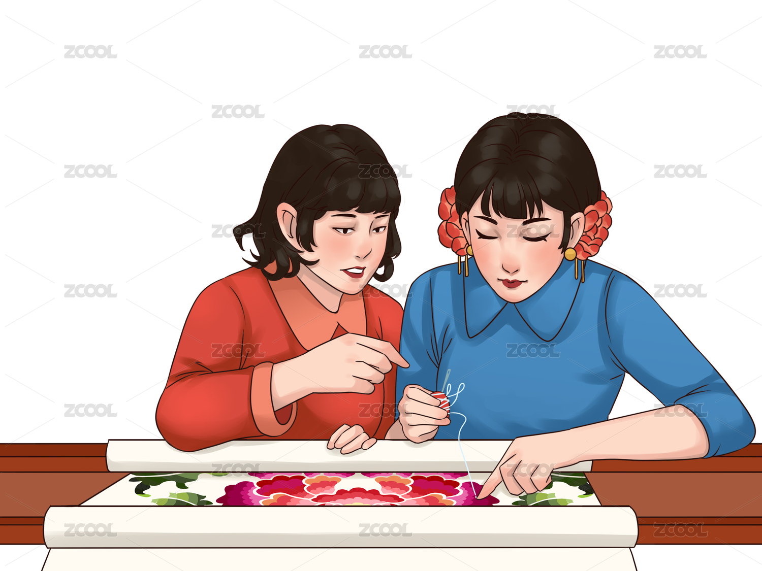 小寒剪窗花的人桌子姐姐剪窗花剪纸灯笼