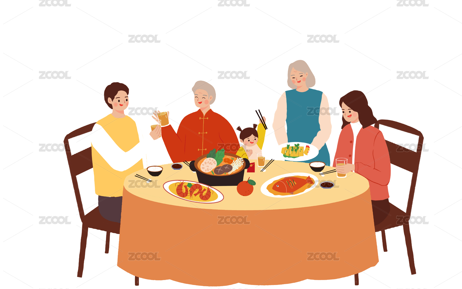 吃饭的一家人 除夕年夜饭合家团圆饭空白背