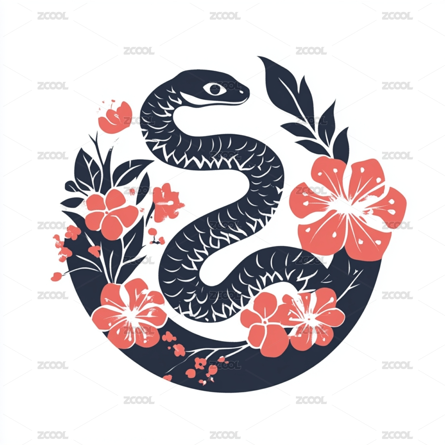 蛇,snake,蛇年主题,插画,艺术,剪纸,logo,徽章,窗花,标志
