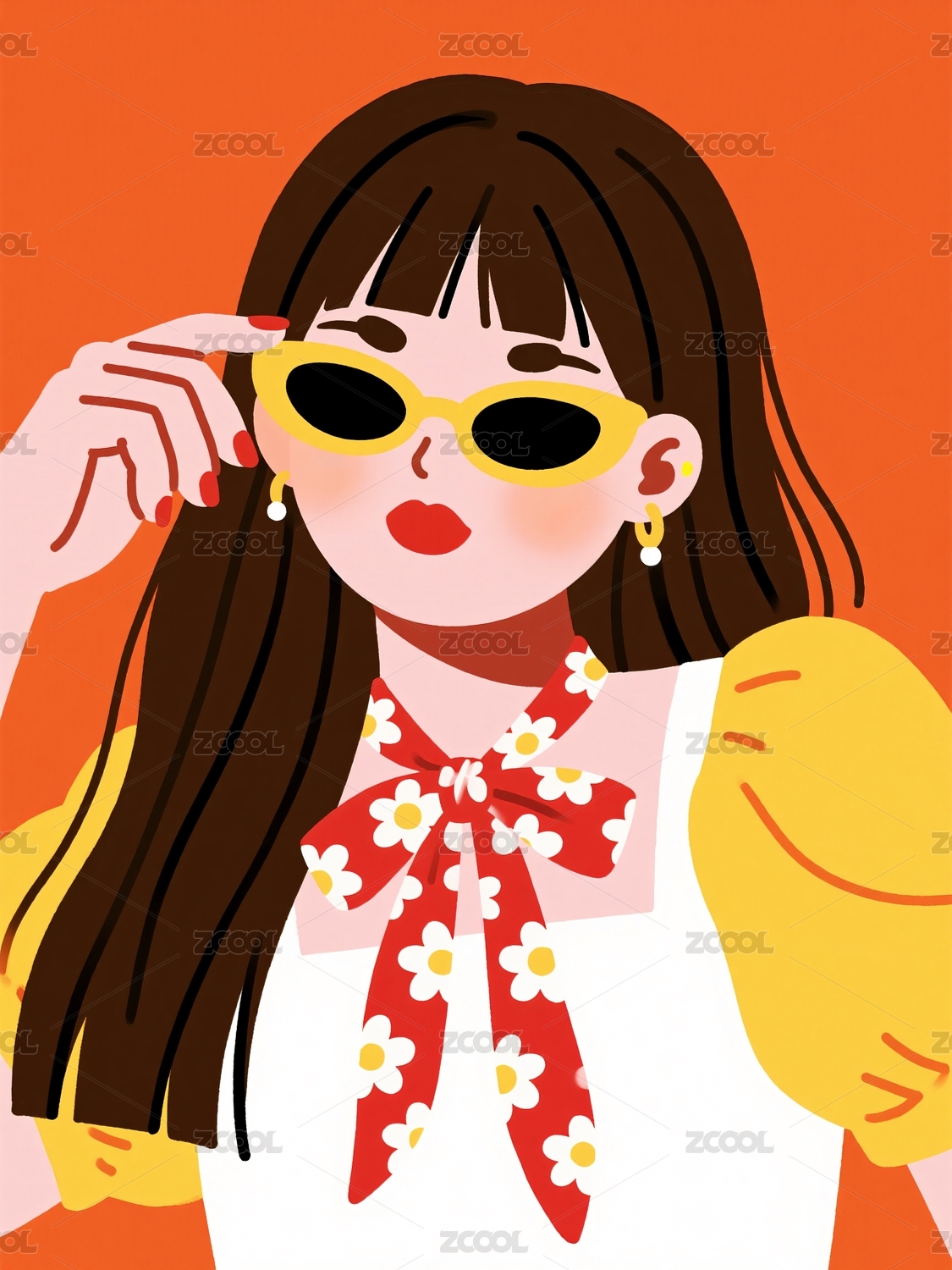时尚女孩头像插画