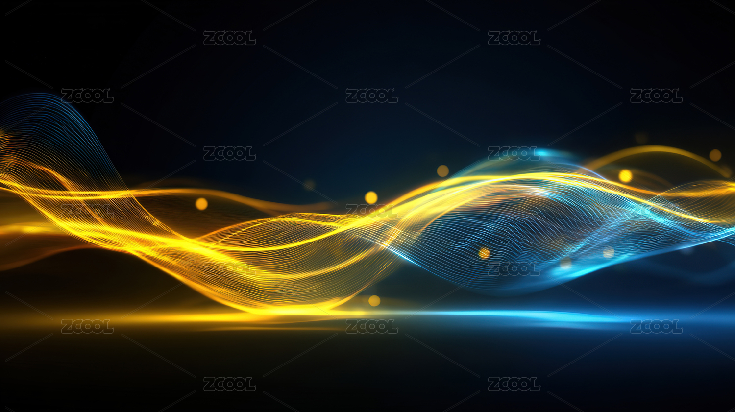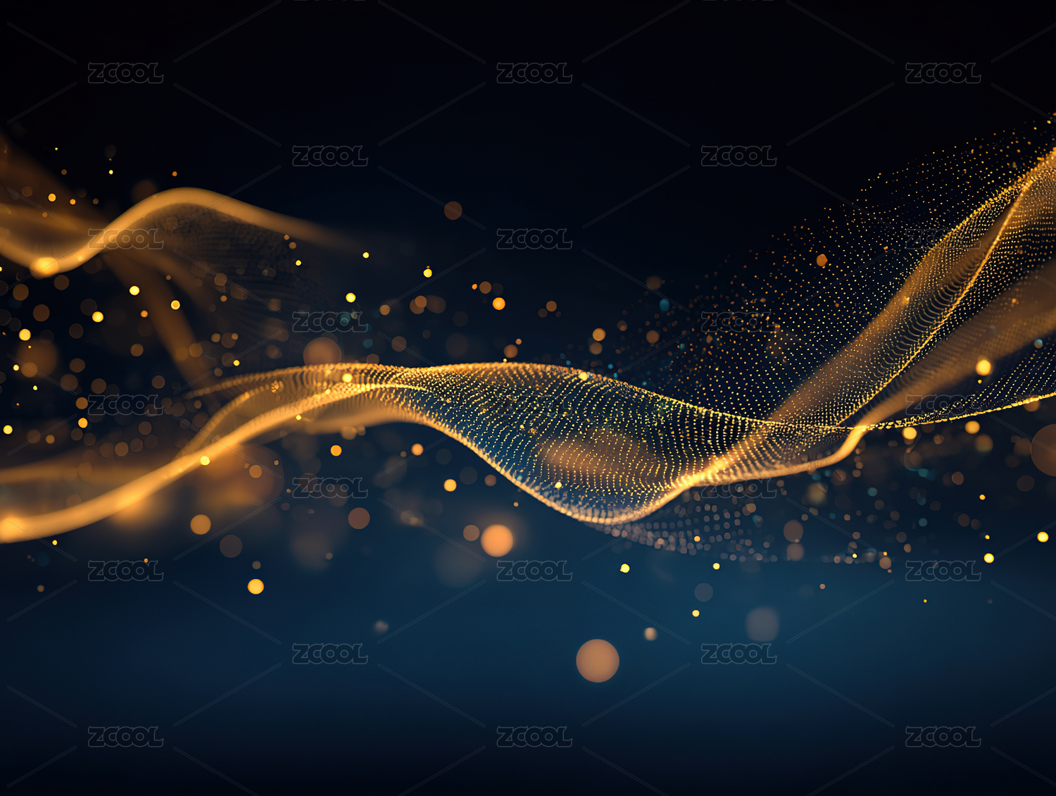 流动的金色光波在深蓝背景中闪烁
