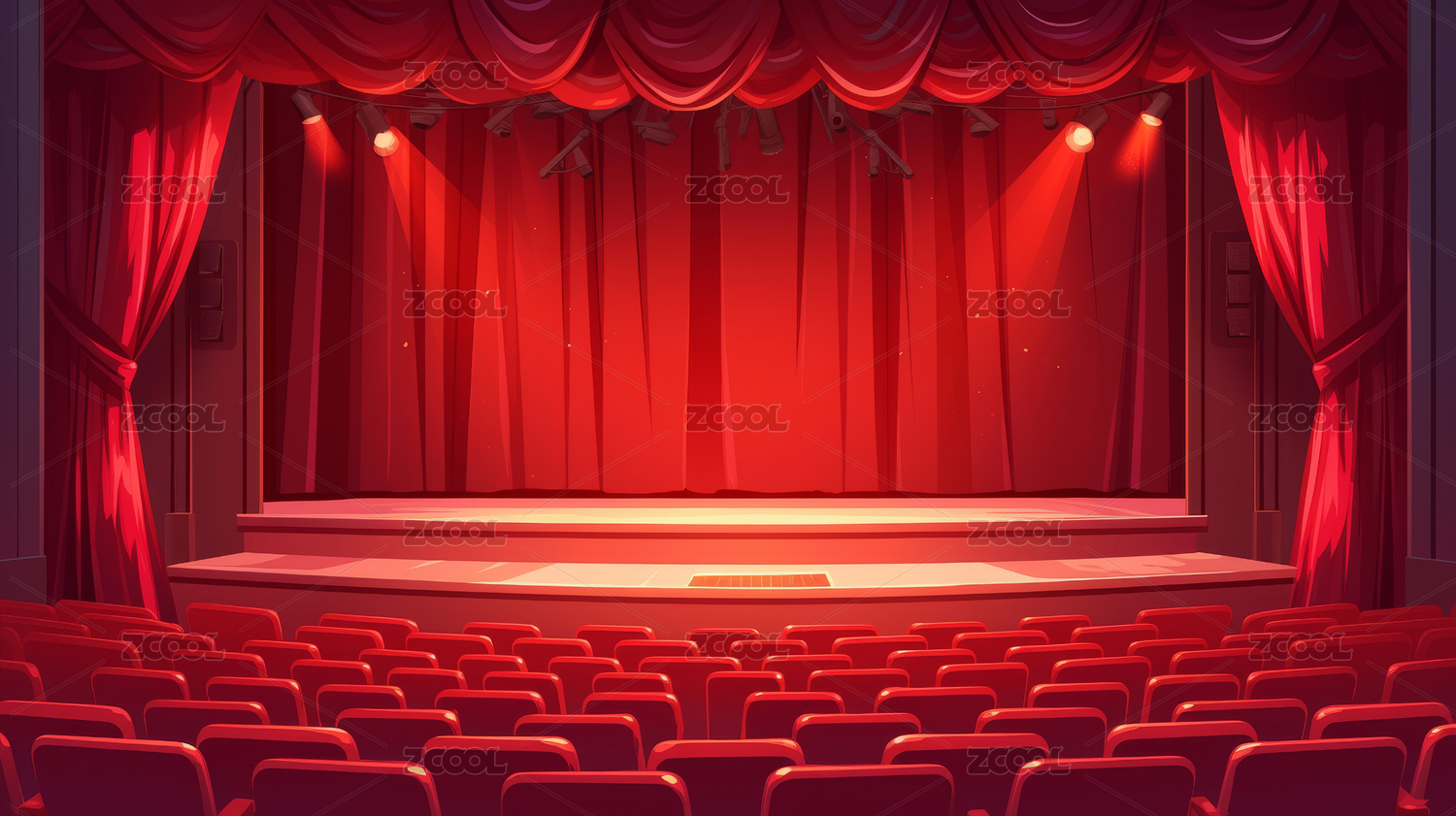 插画,卡通,场景,插图,剧院,舞台,演出,表演,场所,演出厅