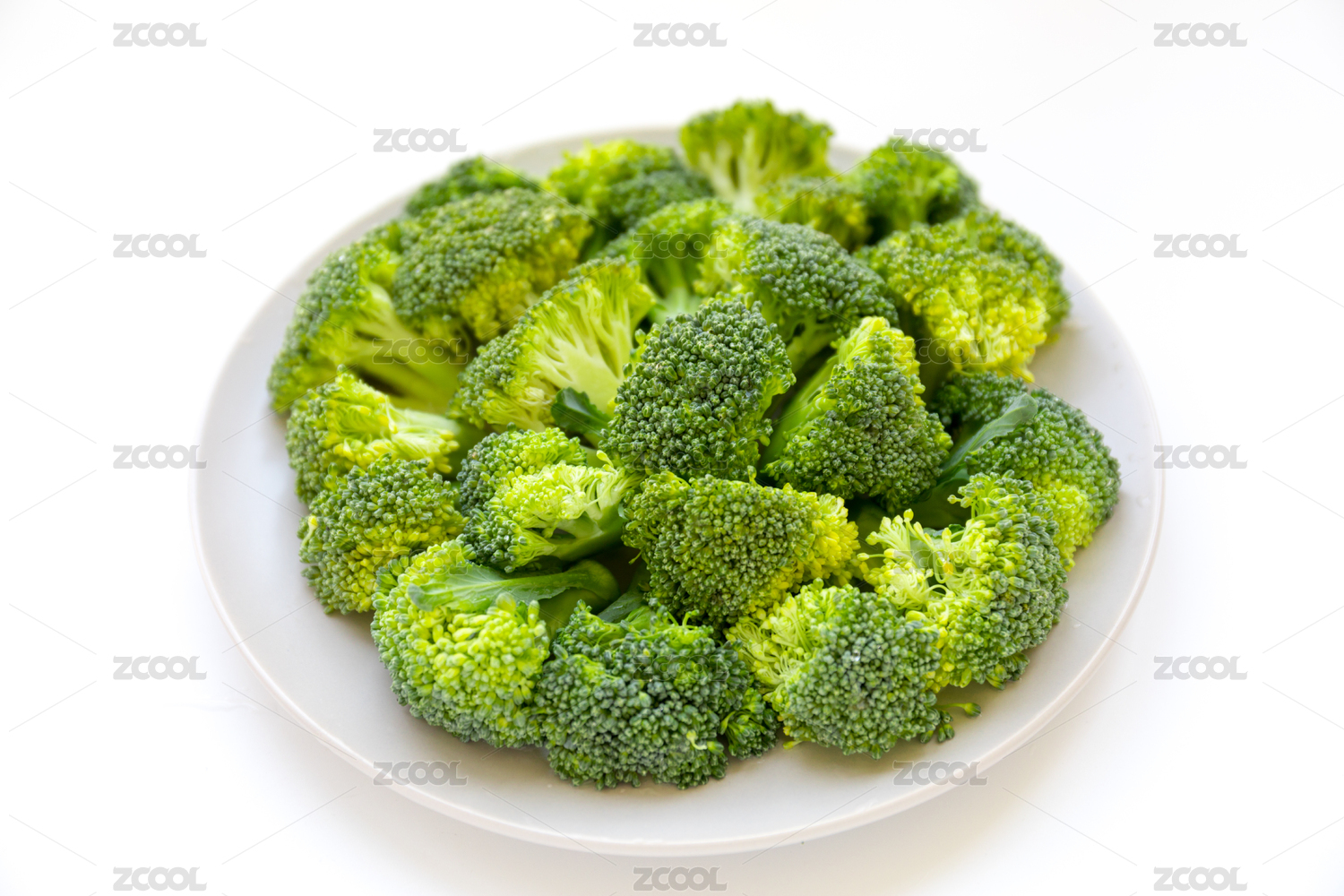 白色背景中一碟切好的新鲜西兰花