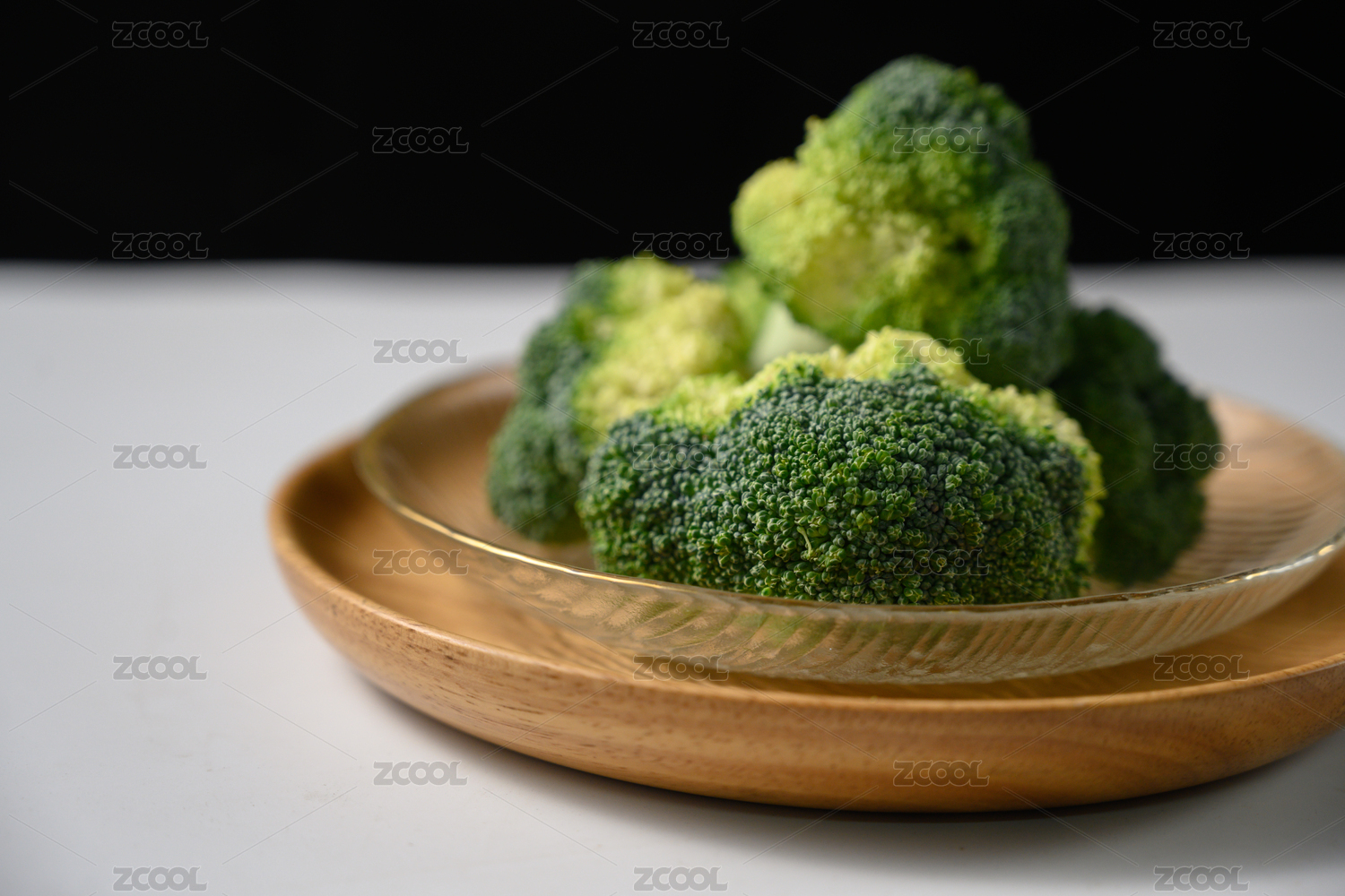 保健蔬菜西蓝花盛放在盘子中摆放在桌面上