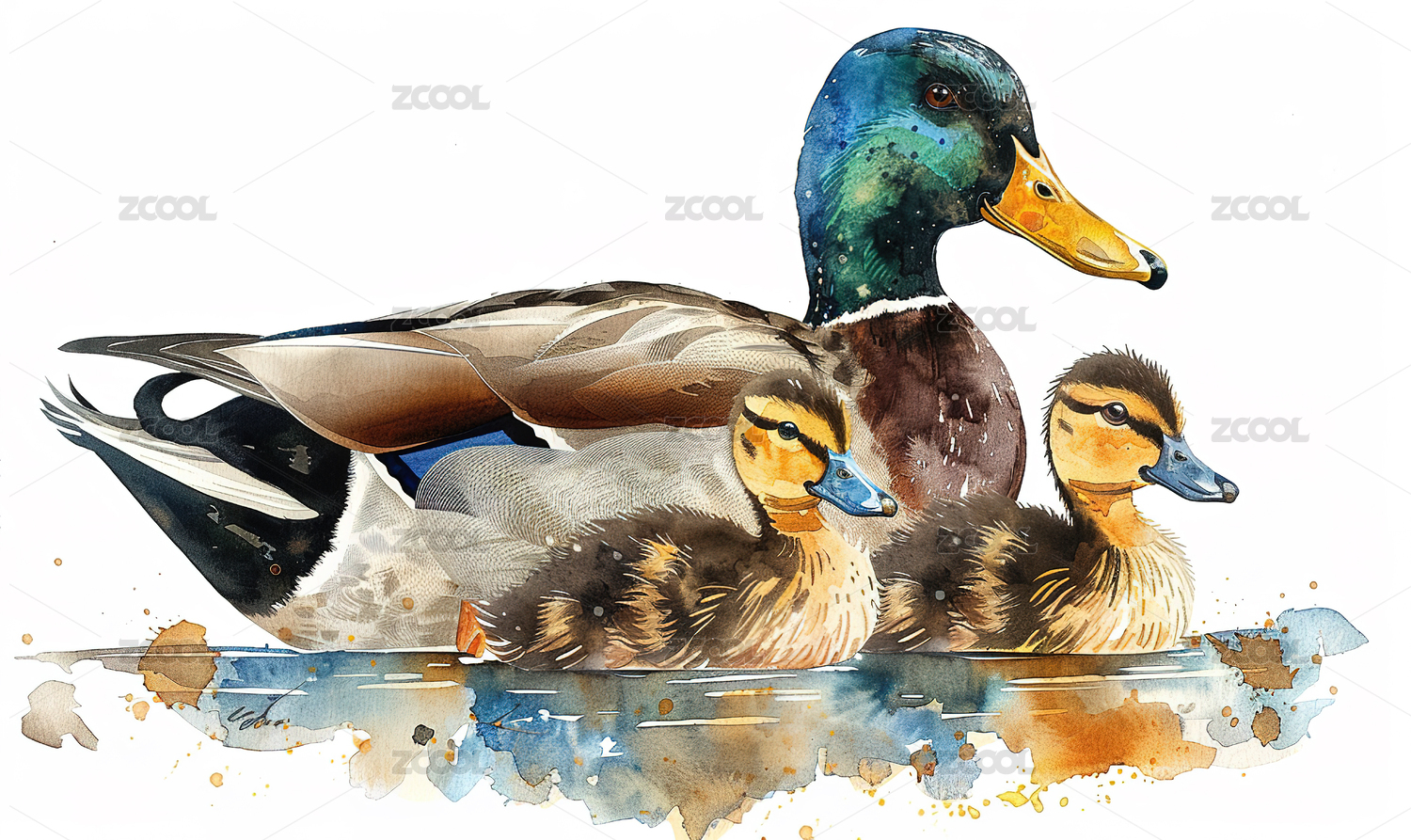 水彩风野鸭鸭子插画