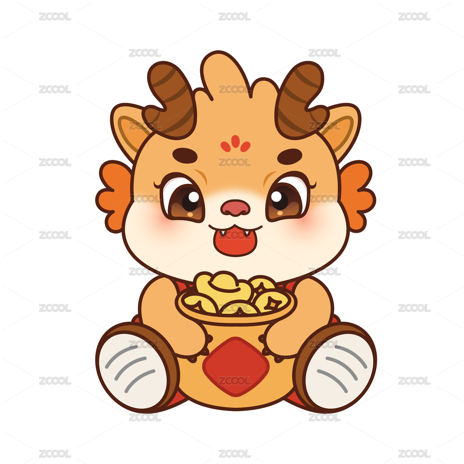 一只抱聚宝盆的龙宝宝