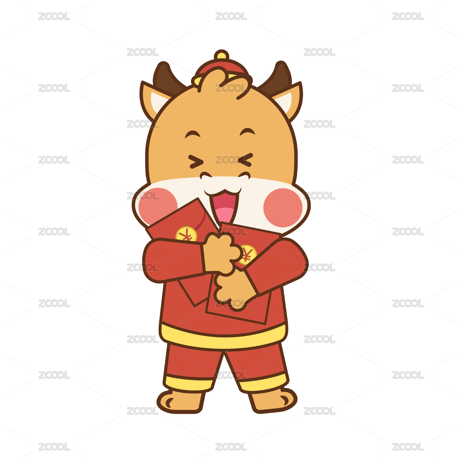 拿着新年红包和金元宝的小牛
