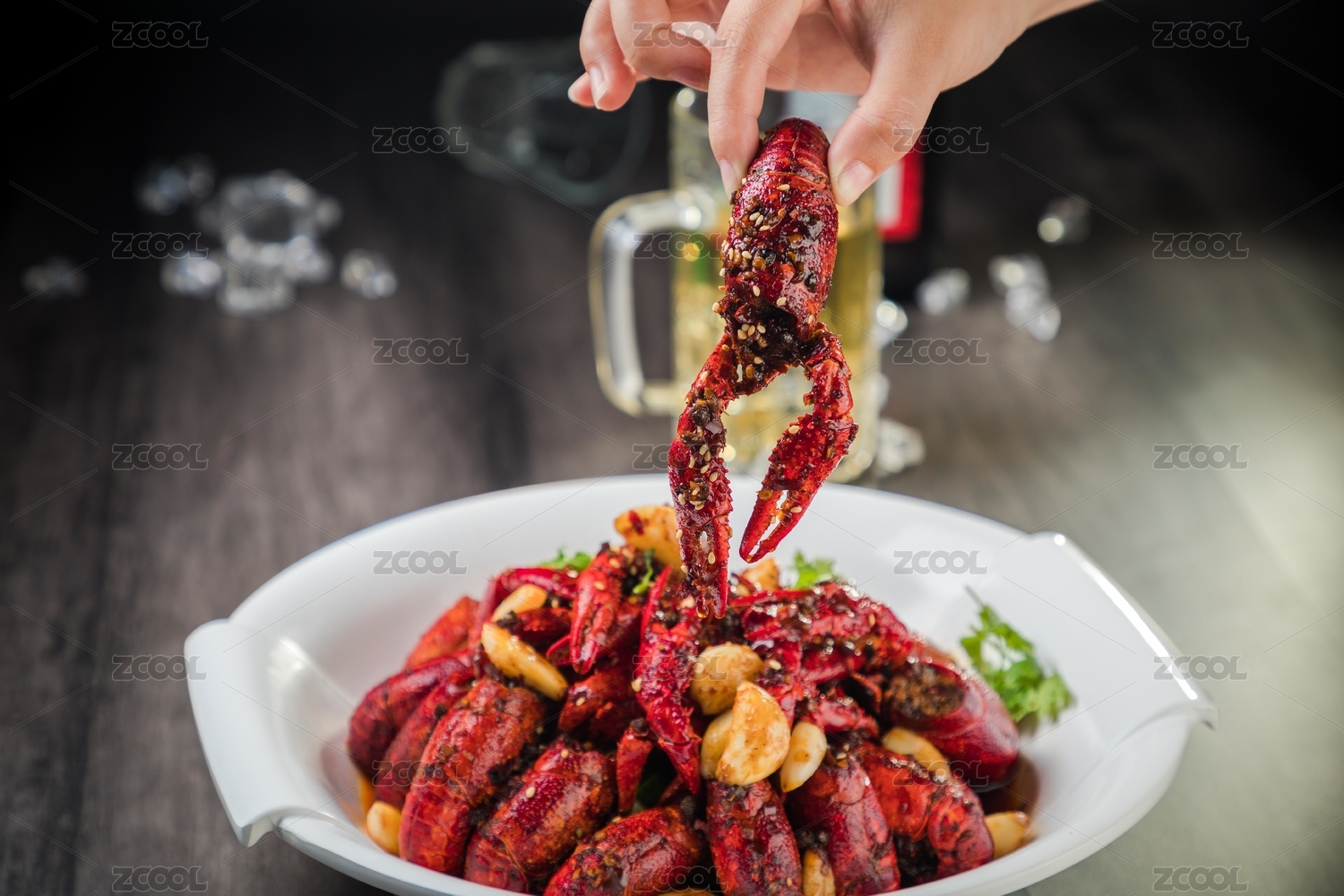 麻辣小龙虾,麻小,烹饪,碟,蔬菜,冰块,晚餐,美食,夏季,凉菜