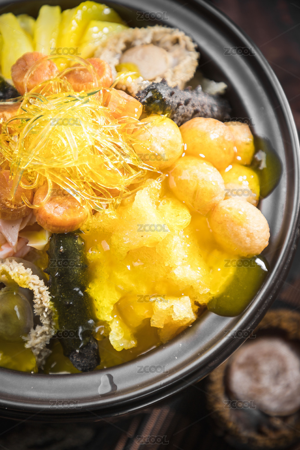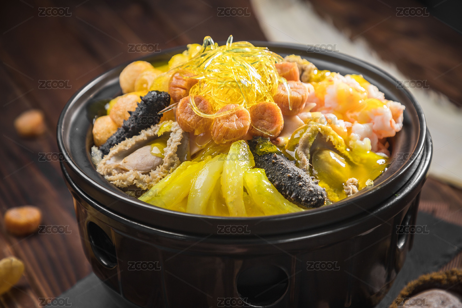 佛跳墙,鱼丸,鱼翅,鲍鱼,海参,虾仁,鱼肚,牡蛎,浇汁,金汤
