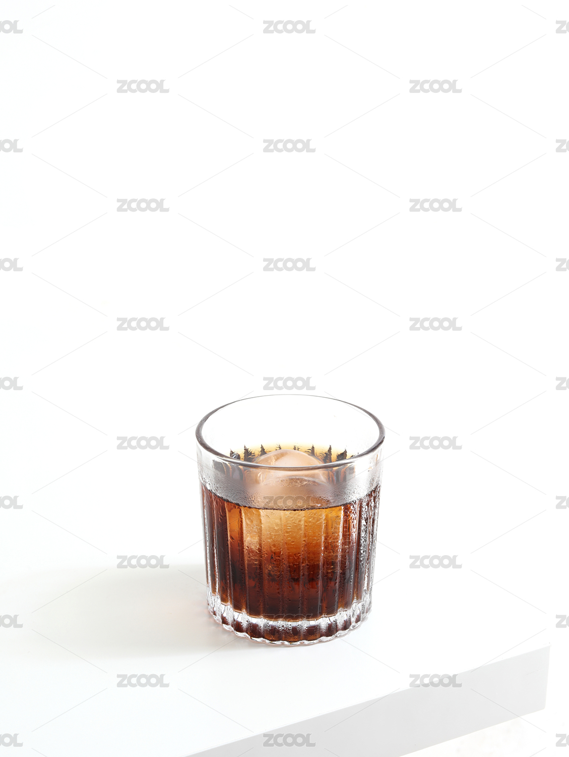 白色桌面上的一杯夏日冰饮咖啡饮料