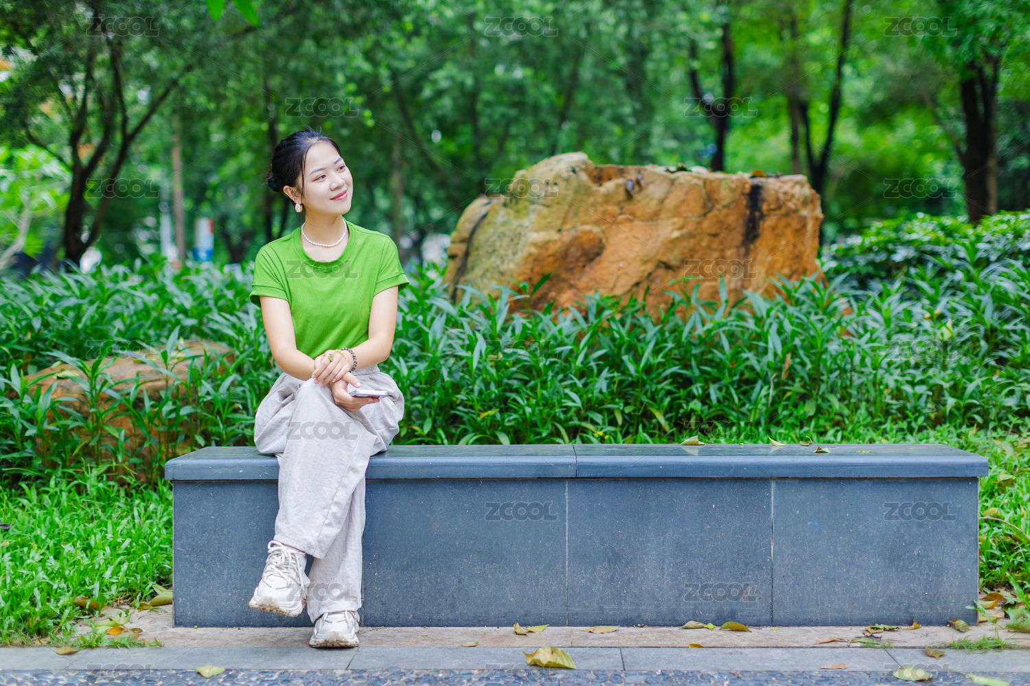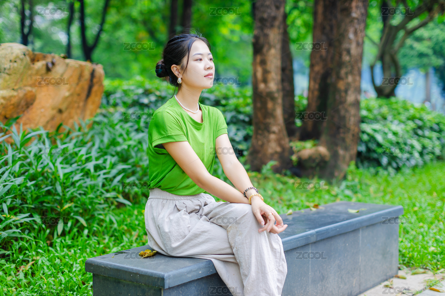 年轻的女孩在江西省赣州市安远县的树林游玩