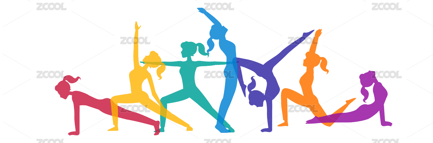 瑜伽女孩人物彩色剪影插画