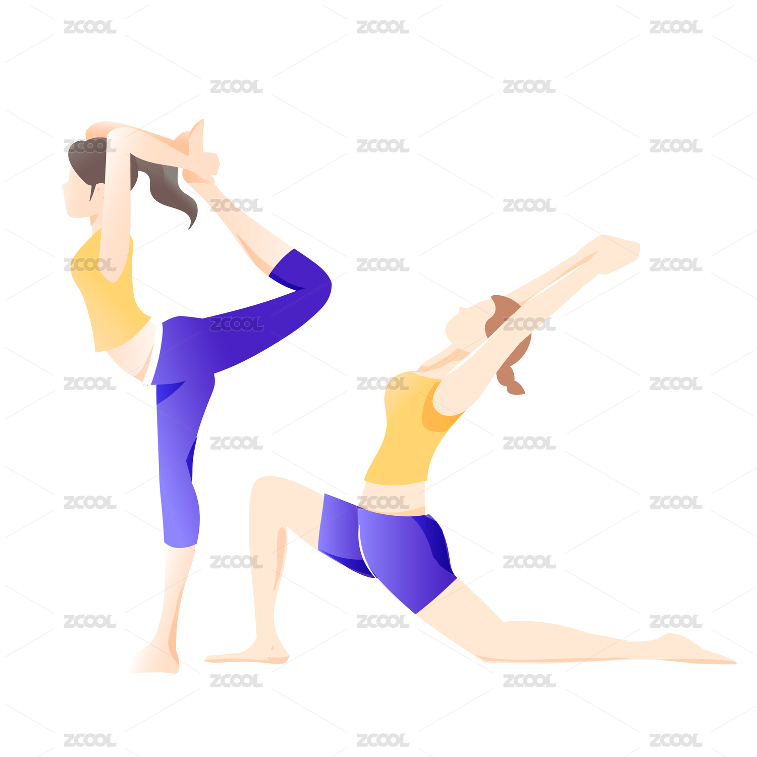 两个女生运动练瑜伽健康生活方式矢量插画