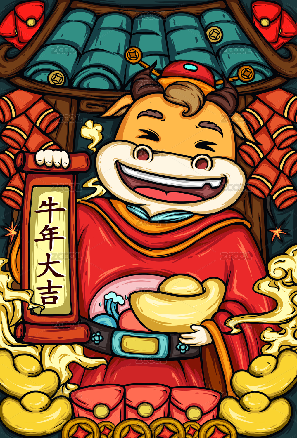 牛年,火箭,星球,吉利,步步高升,中国风,云朵,紫色,黄色调,太空