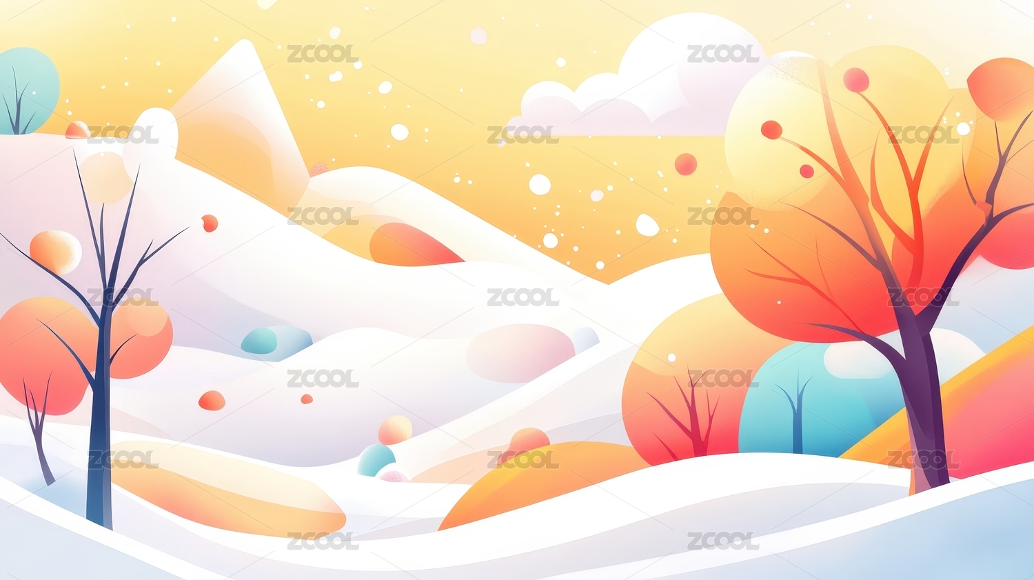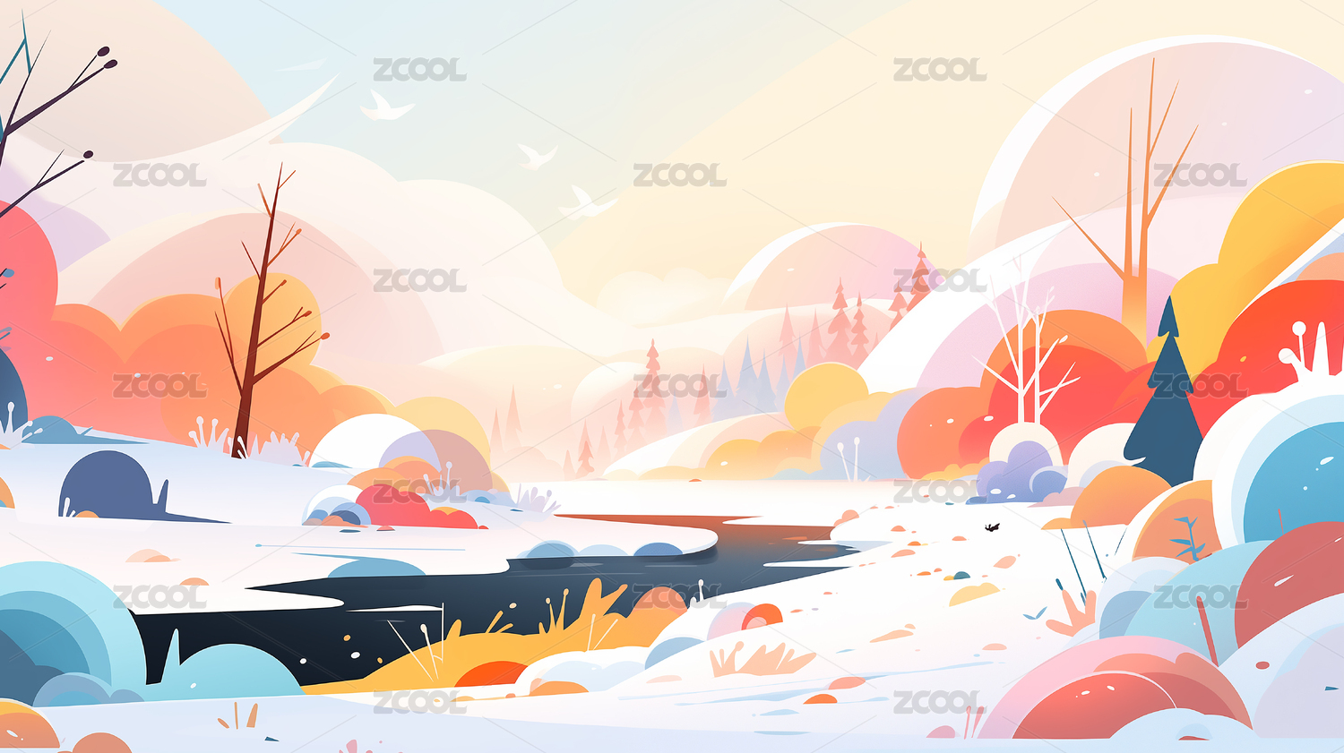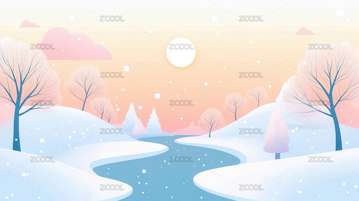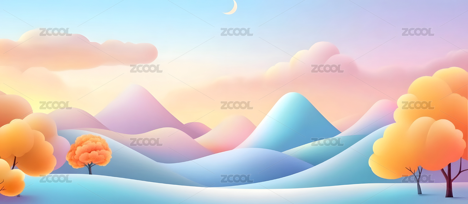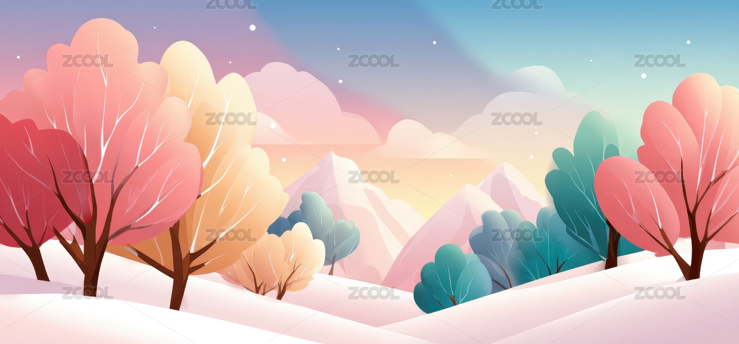 手绘卡通唯美的冬季风景扁平化插画背景