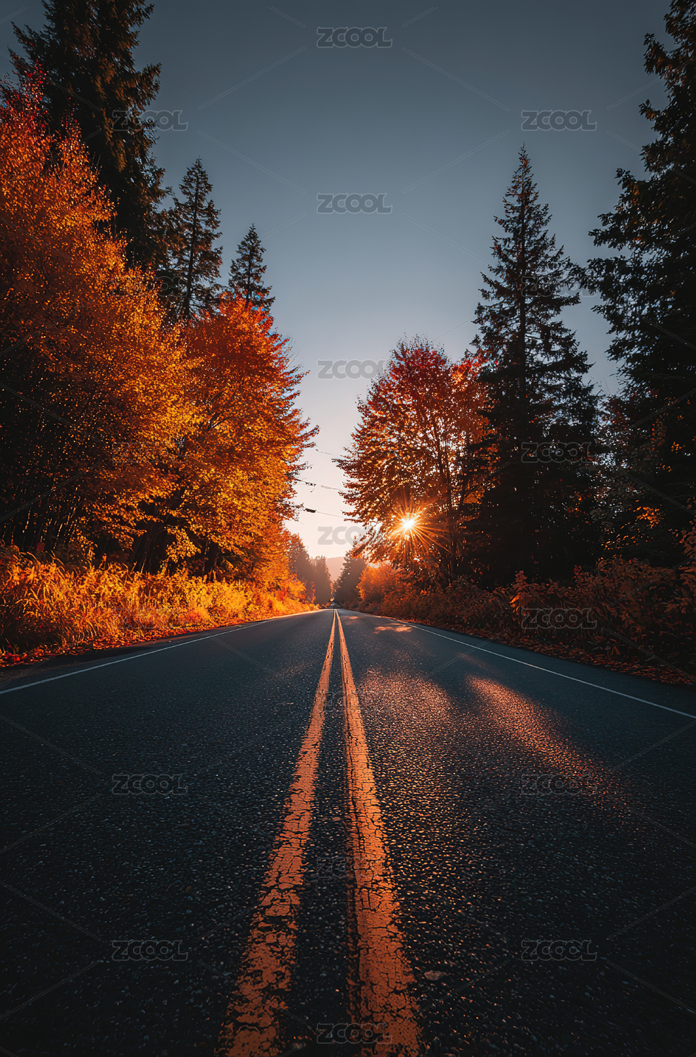 中国吉林通化辉南龙湾群景区秋日林荫大道