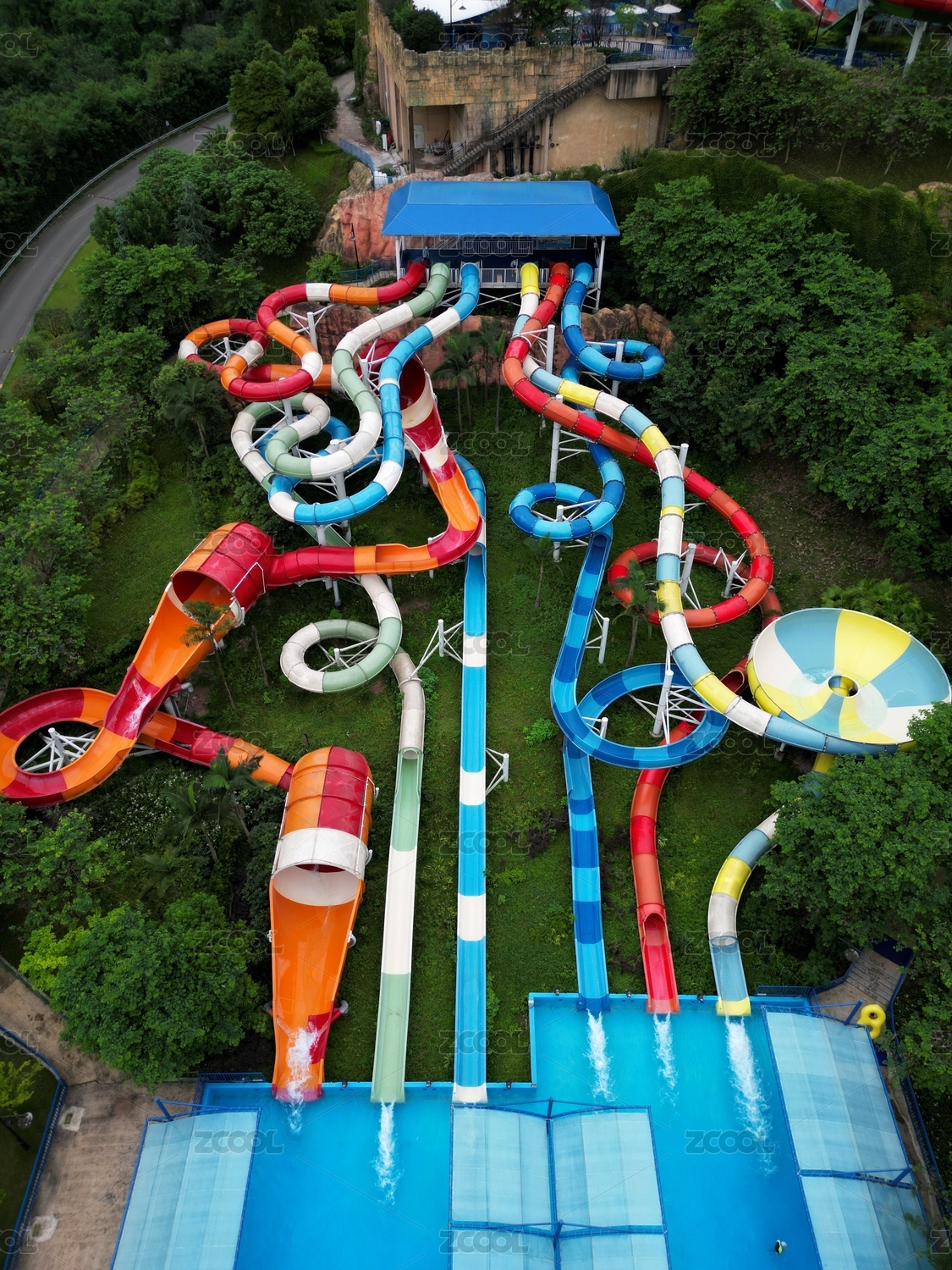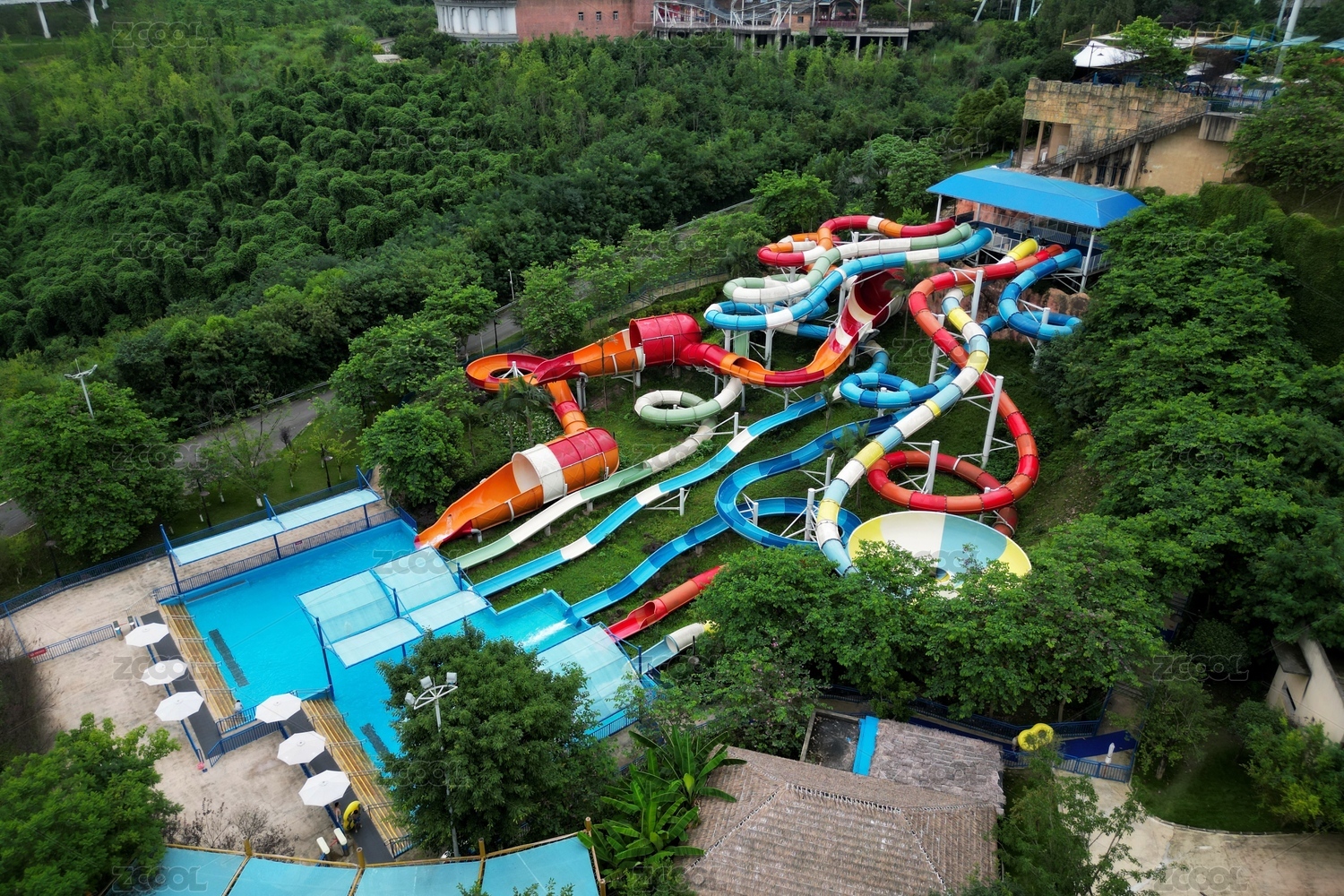 重庆,城市,建筑,航拍,游乐园,重庆欢乐谷,夏天,玩水,游泳,滑道