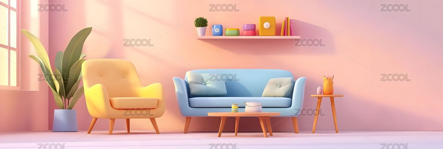 3d,卡通,书房,办公室,办公桌,座椅,电脑,显示器,无人,家具