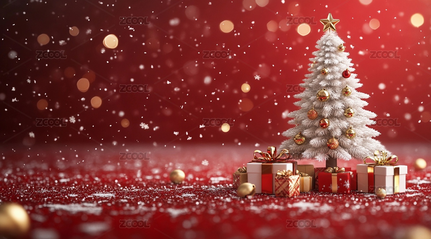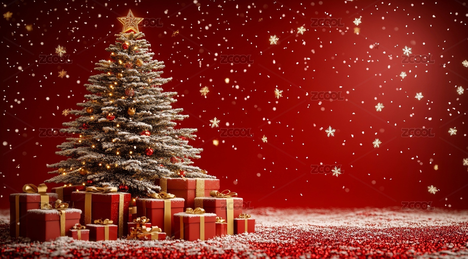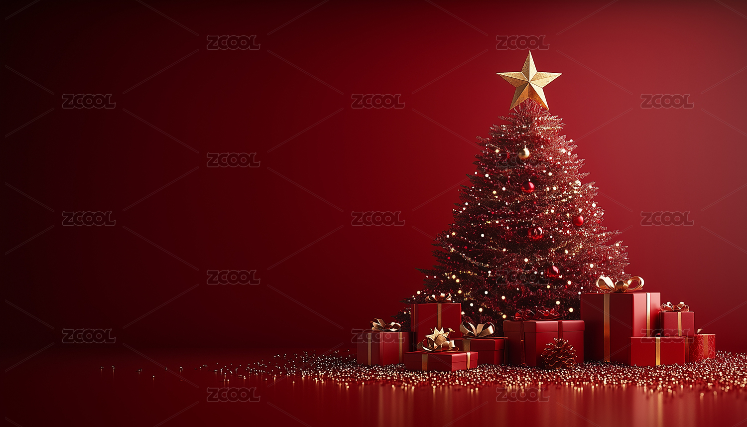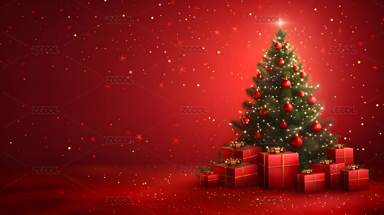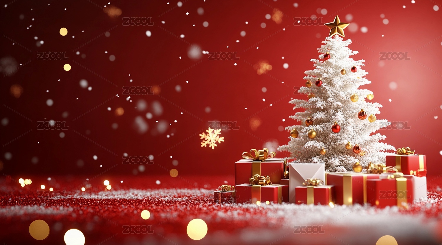 新年圣诞节红色圣诞树唯美背景