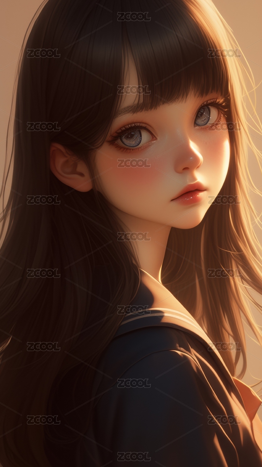 动漫少女侧脸特写