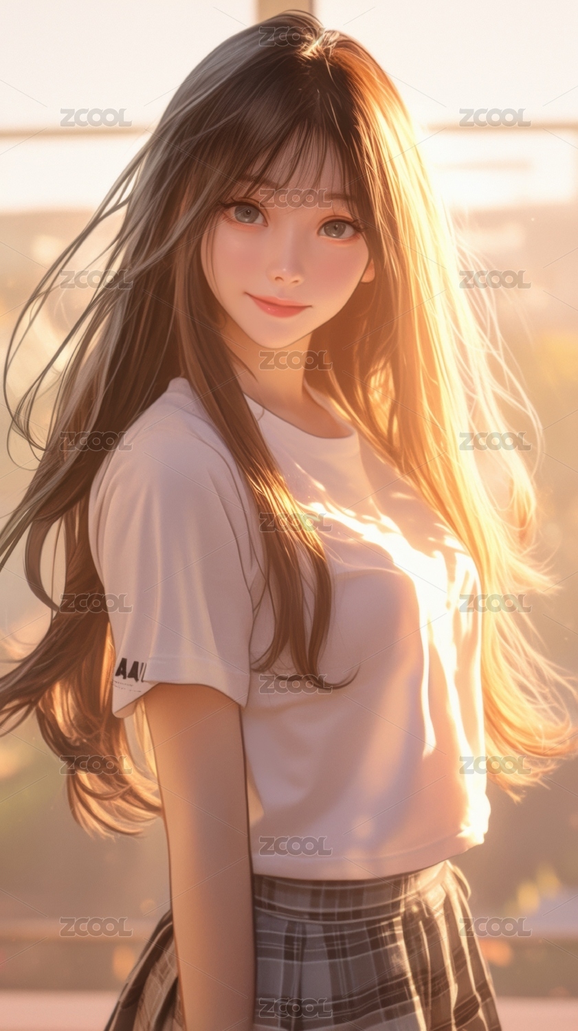 阳光下的长发少女