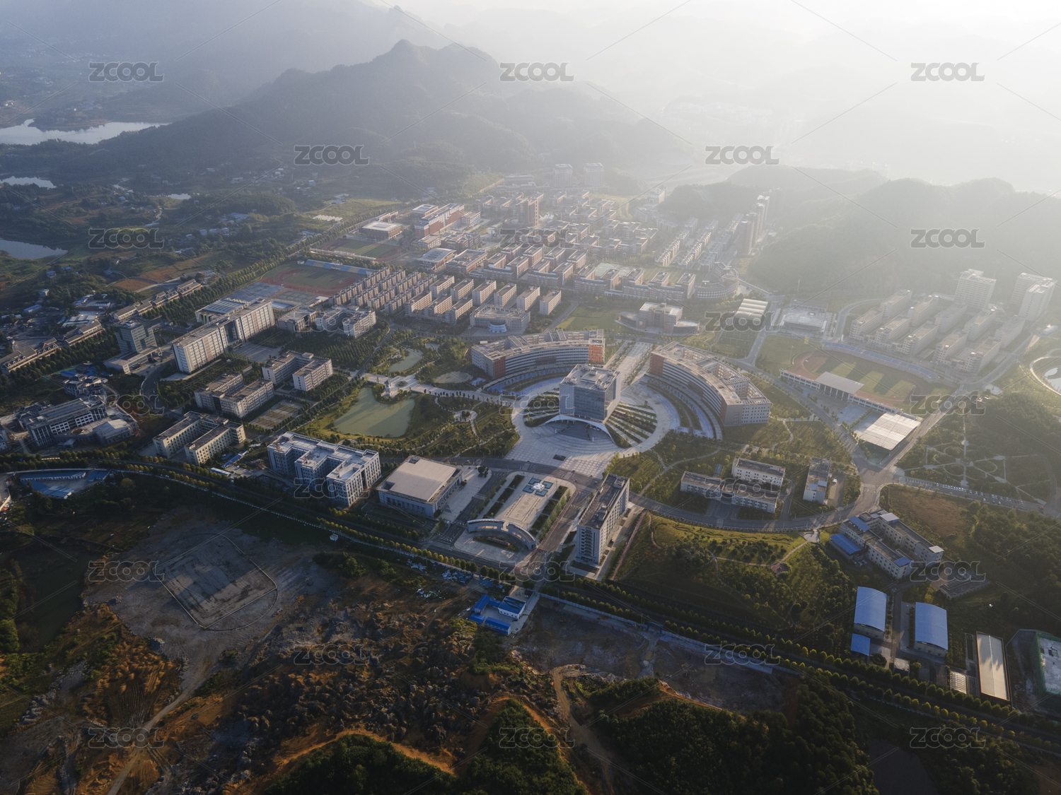 航拍中国贵州贵阳青岩古镇景区与定广湖风光