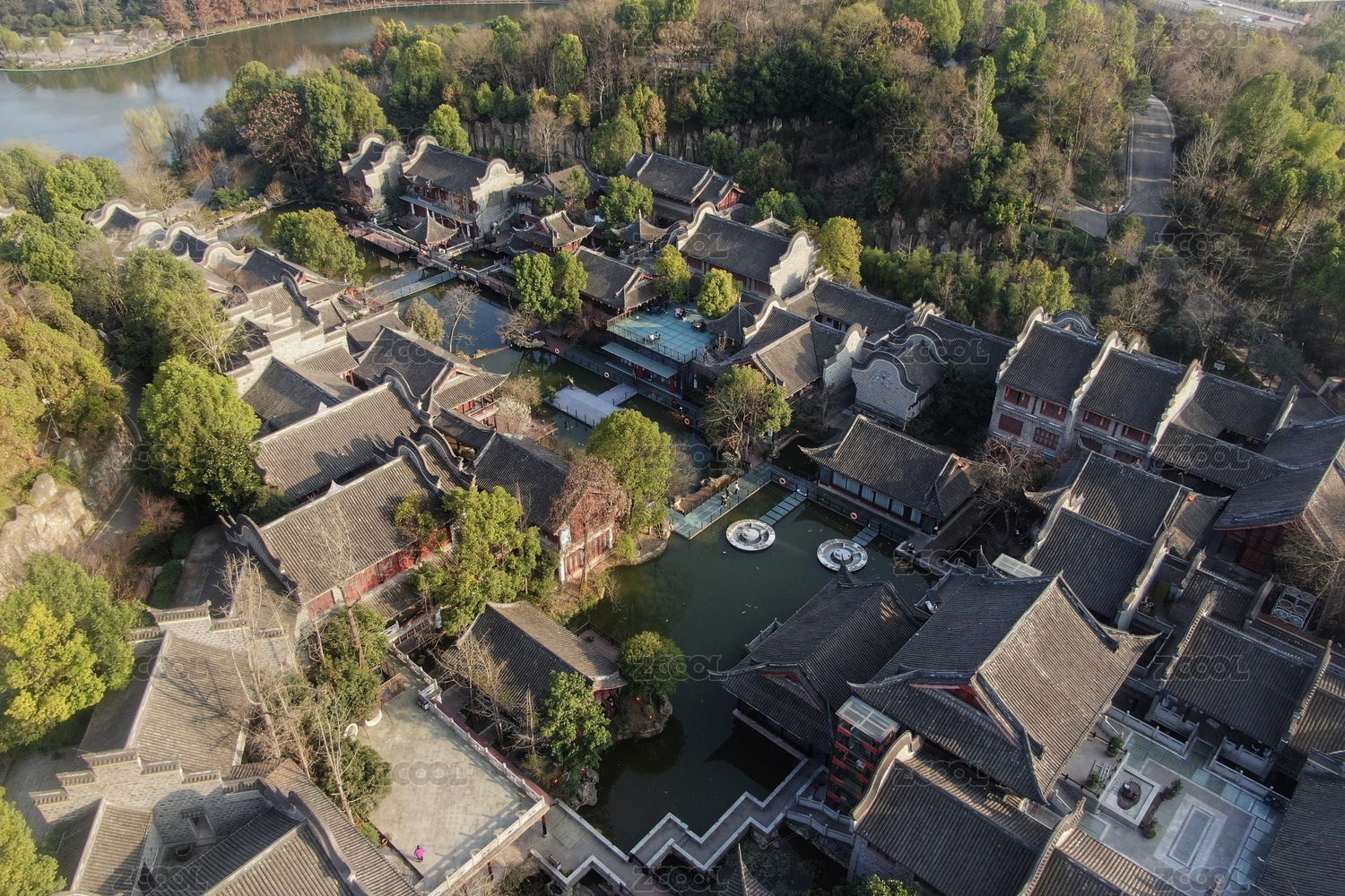 中国浙江绍兴柯岩风景区柯岩鲁镇航拍