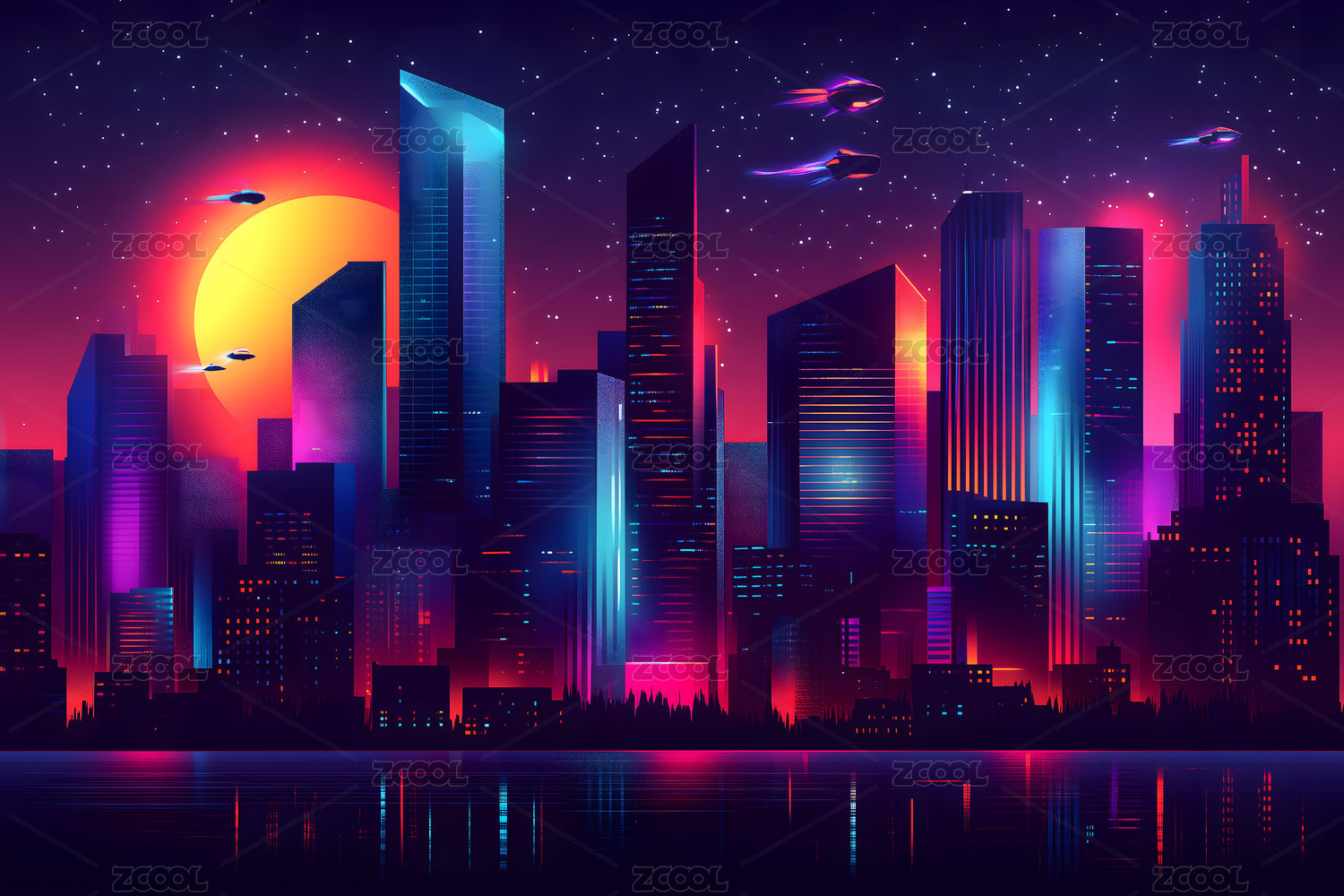 未来城市科幻风格炫彩壁纸背景