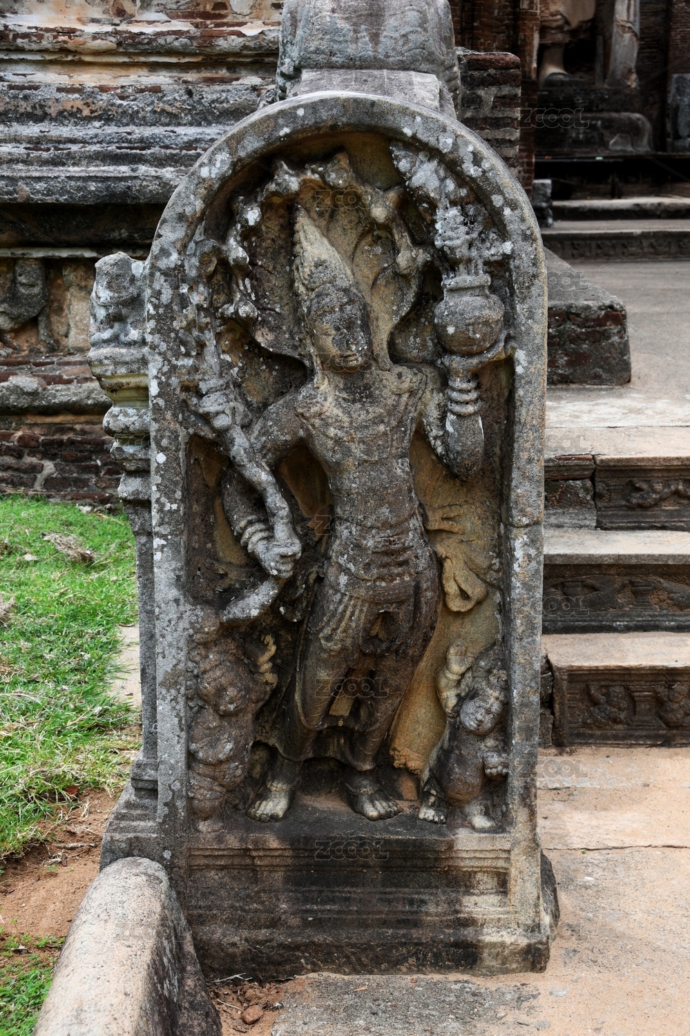 柬埔寨吴哥窟神庙内立柱女神石雕纹样特写