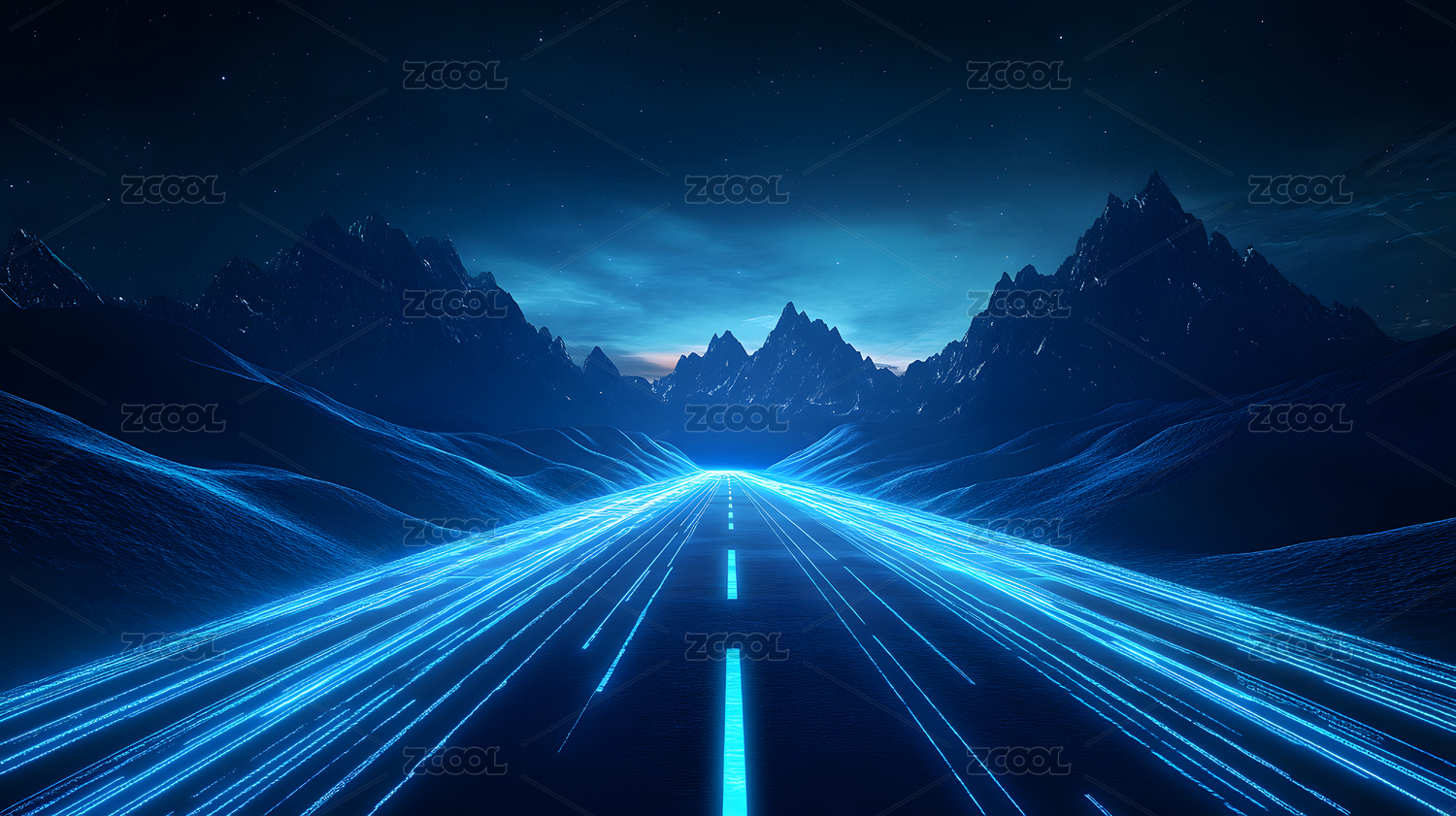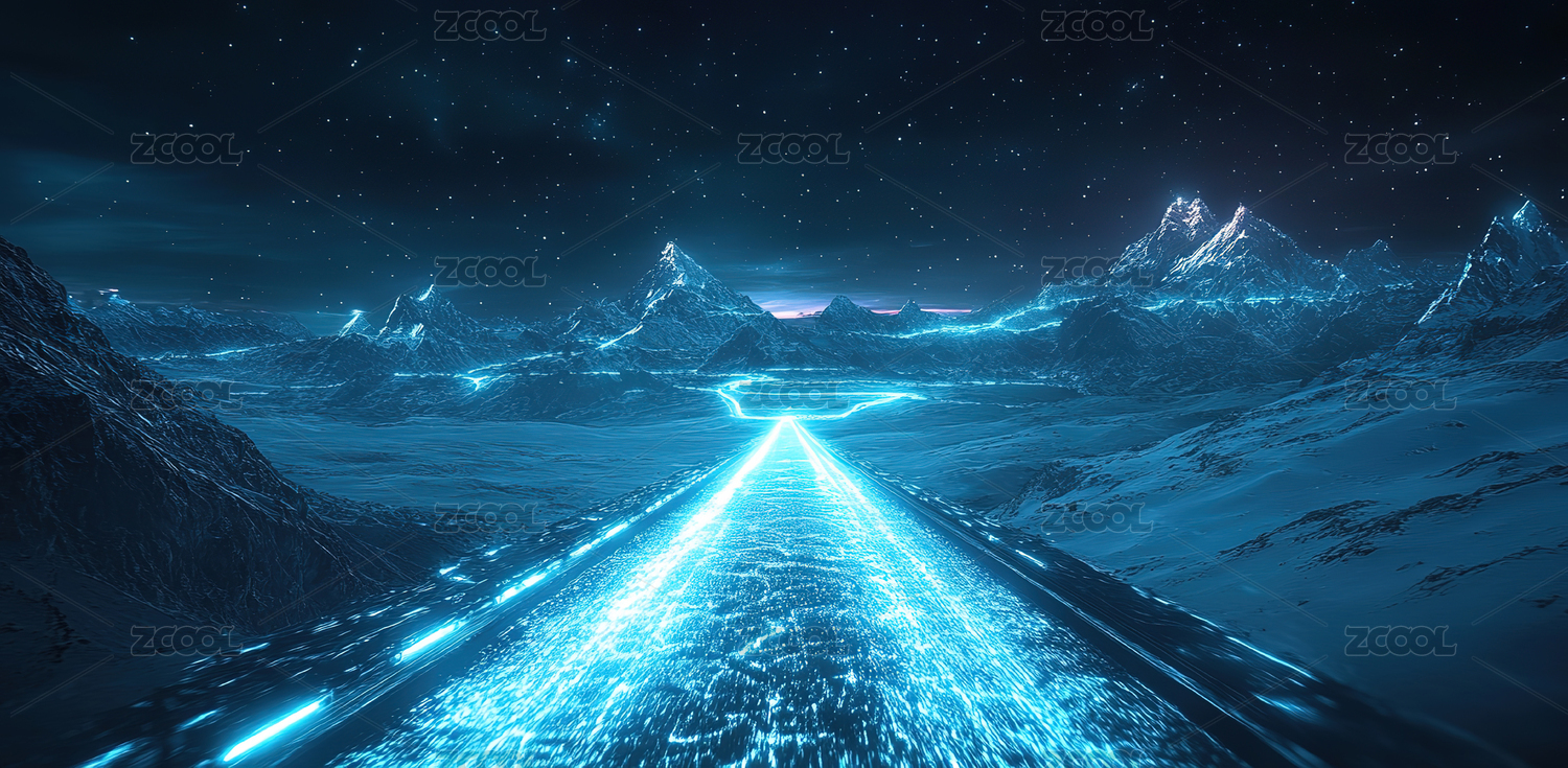 蓝色, 抽象, 科技, 光线, 神秘, 未来, 轨迹, 夜晚, 山脉, 冰川