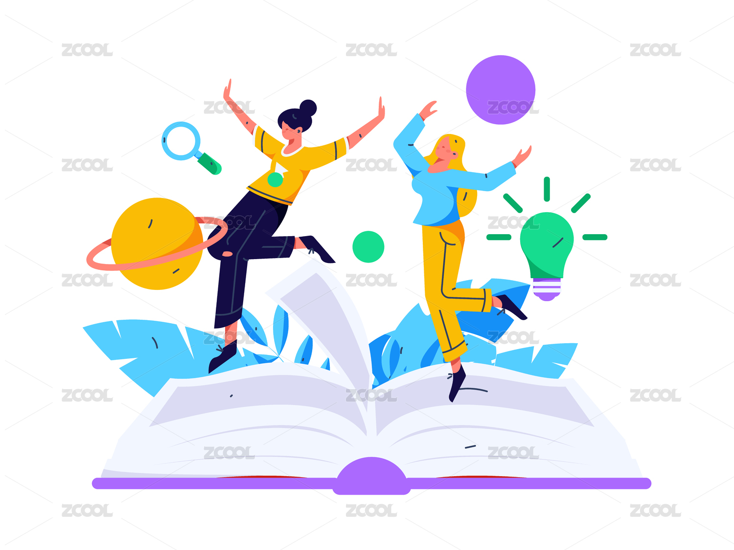 世界读书日阅读人物扁平矢量概念运营手绘插