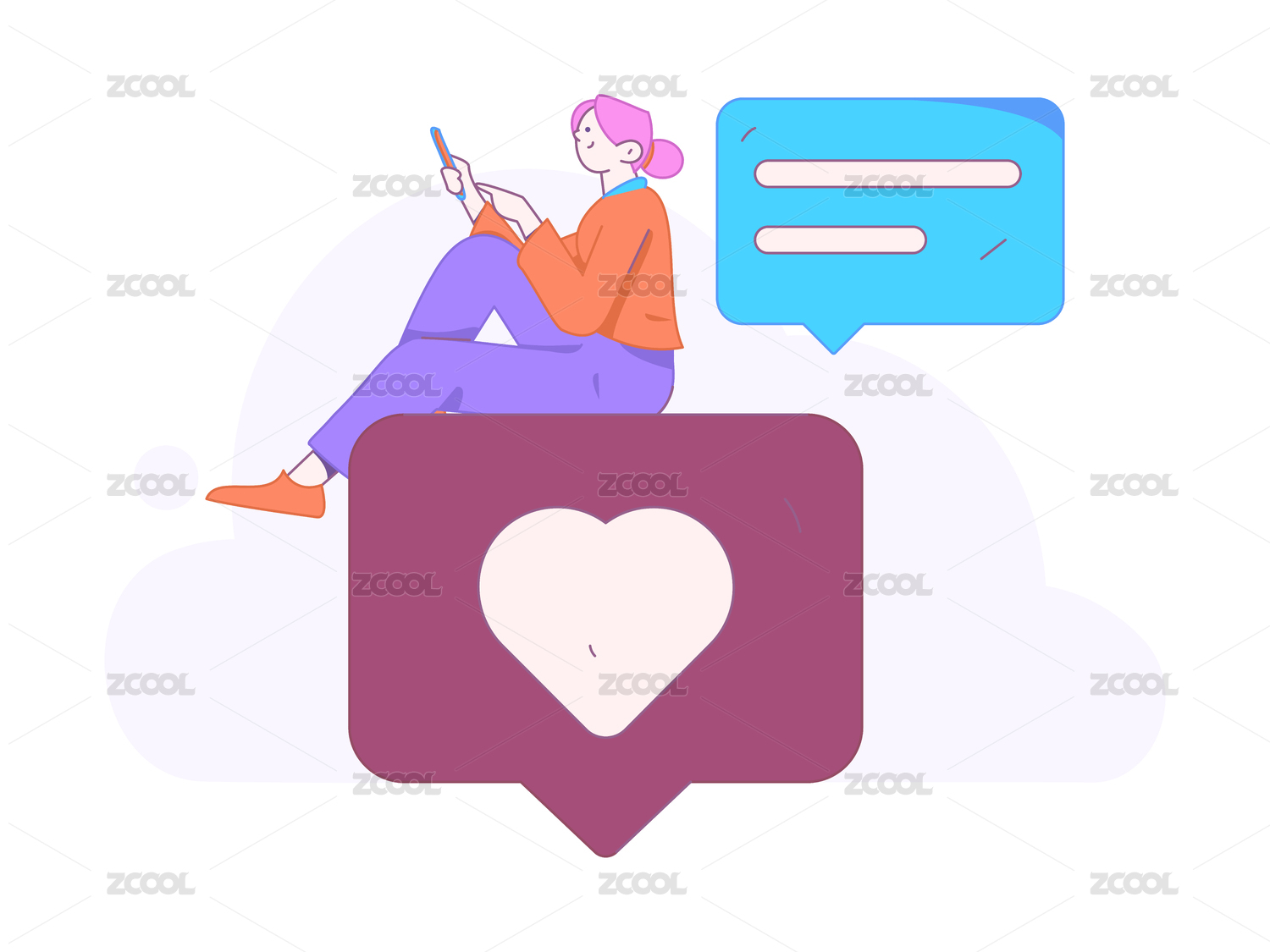 虚拟的人物社交沟通概念商业扁平矢量手绘插
