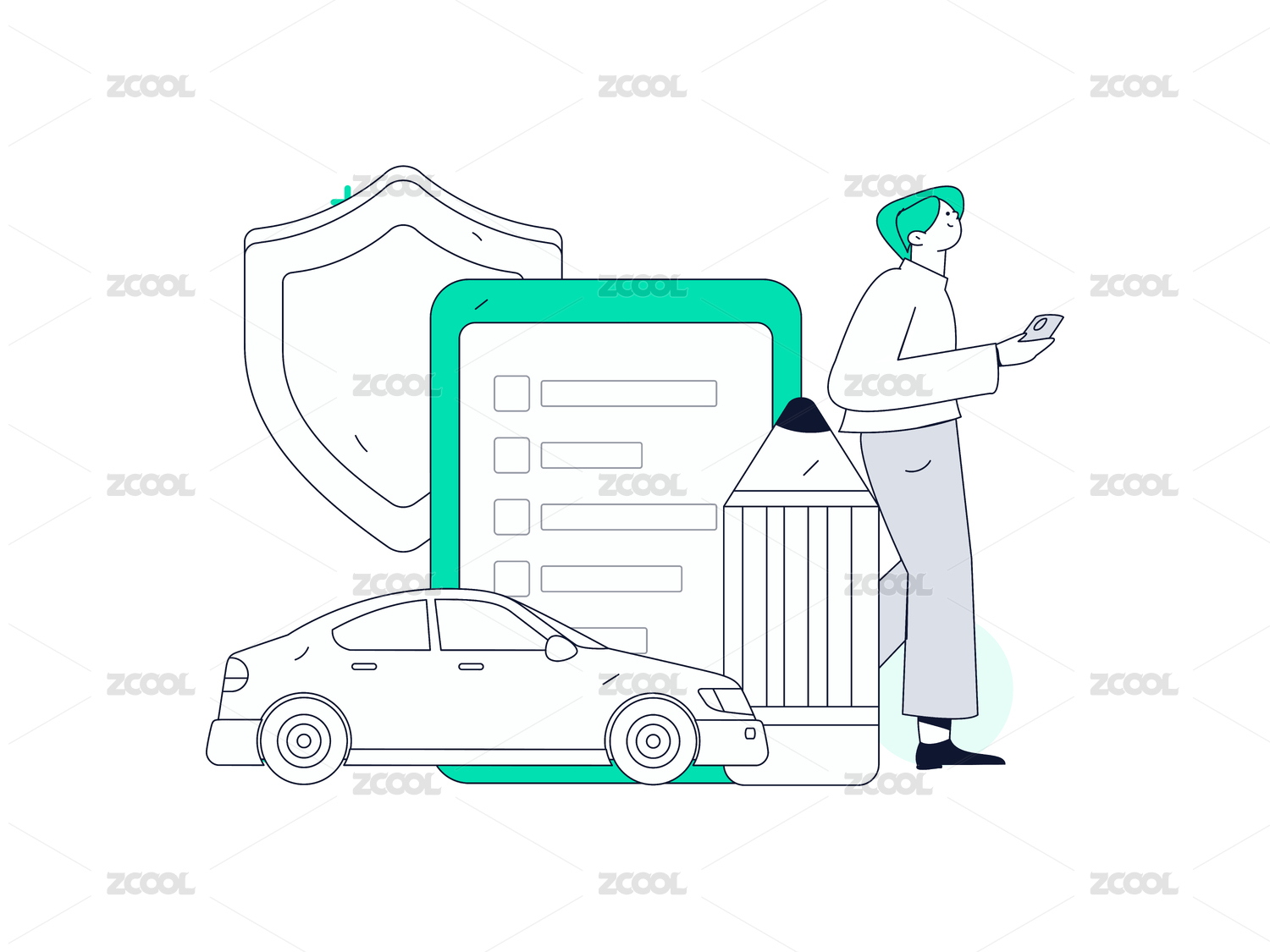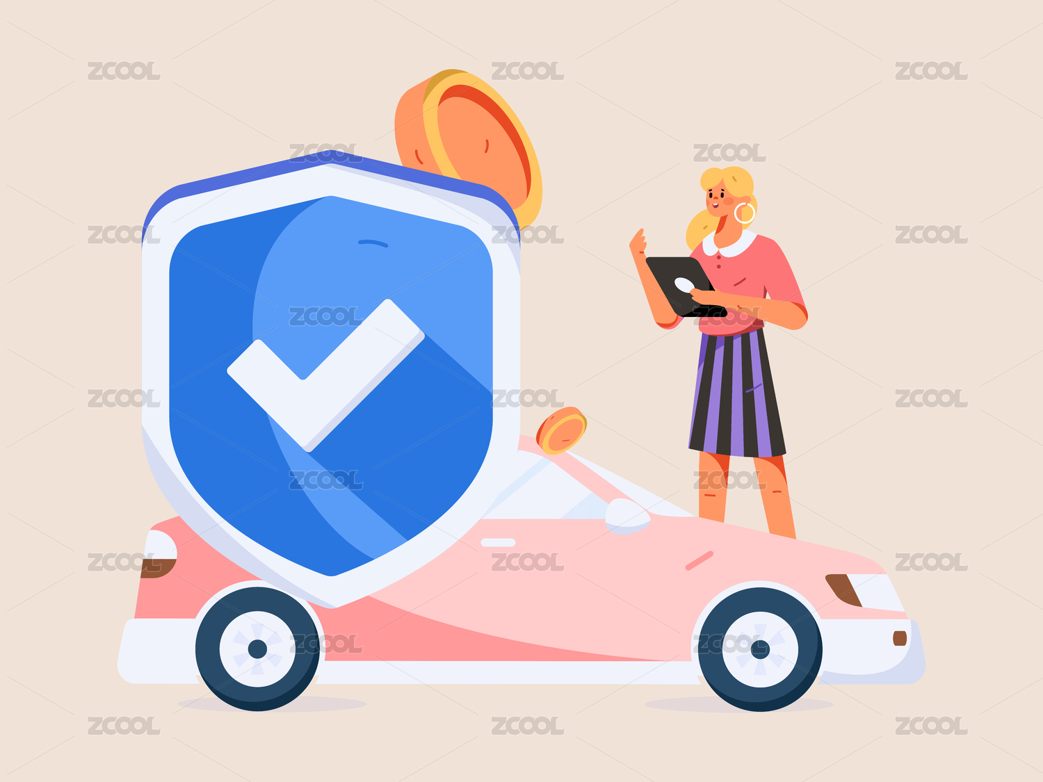 为汽车购买保险扁平人物矢量概念运营手绘插