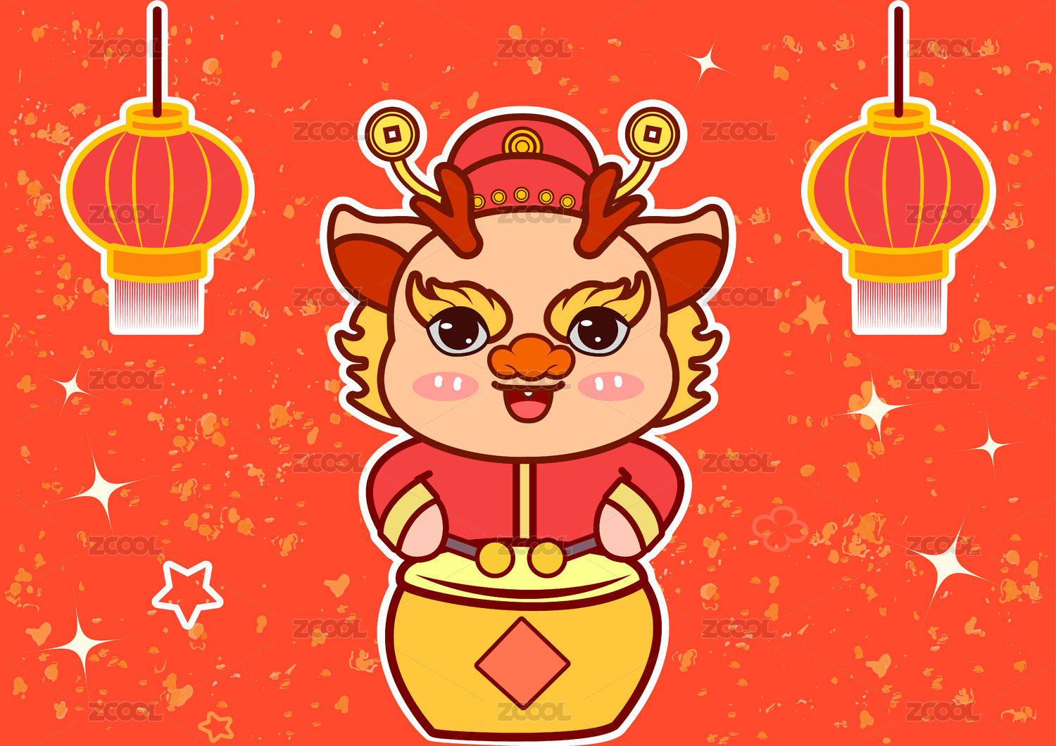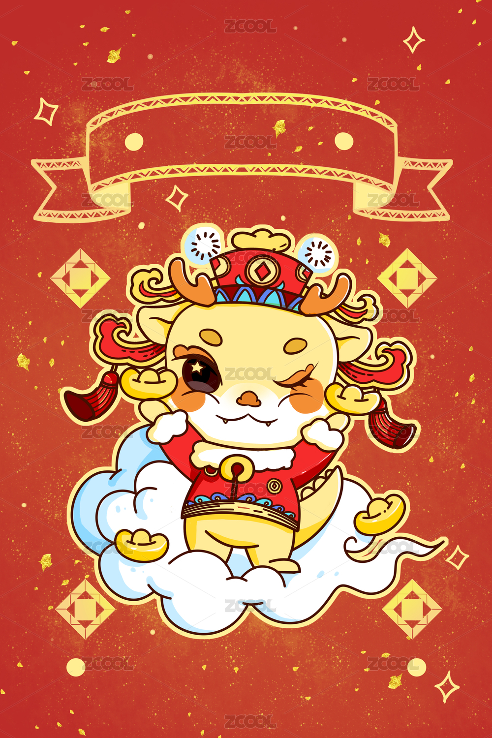 龙年新年春节招财进宝喜庆卡通Q版龙