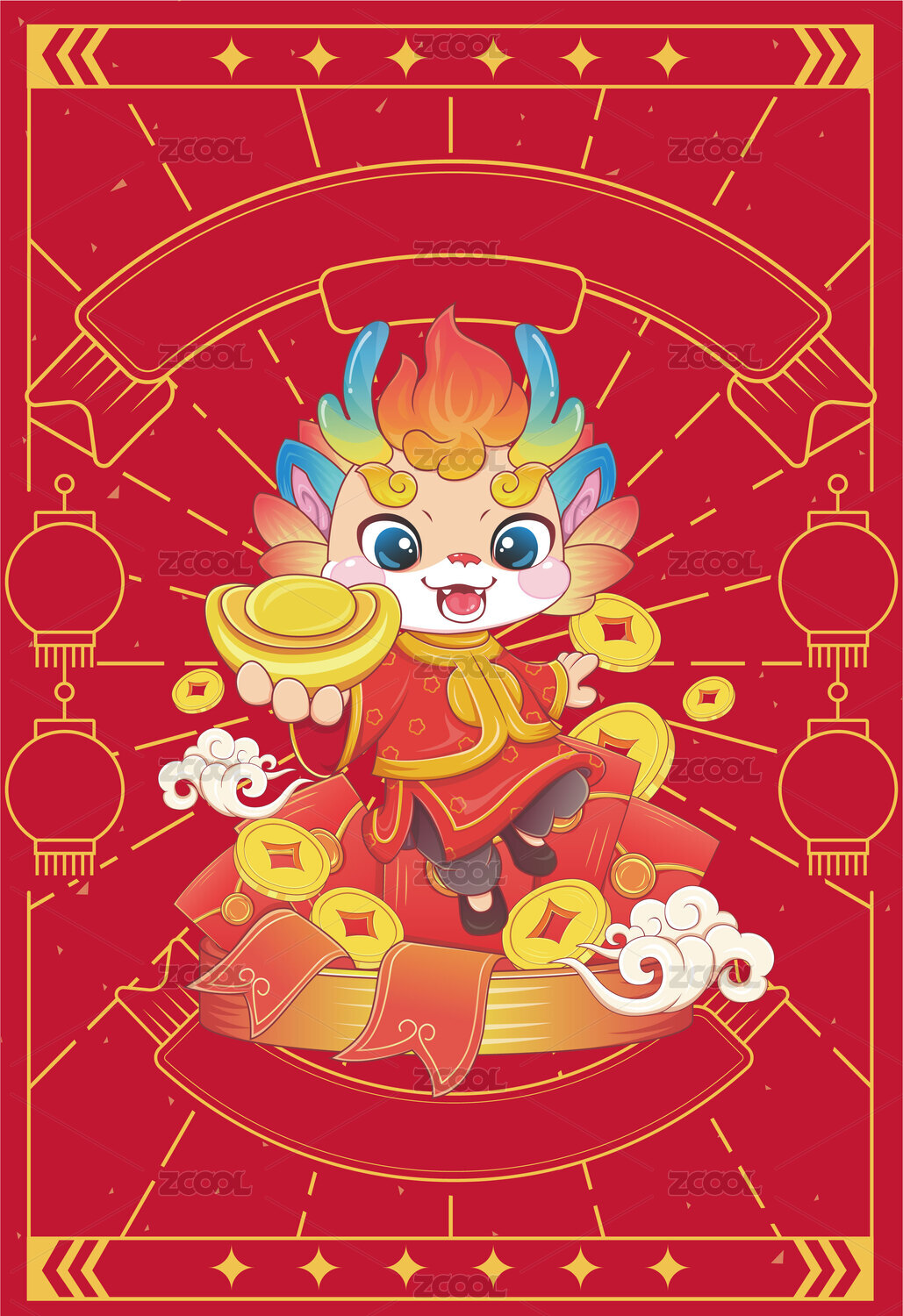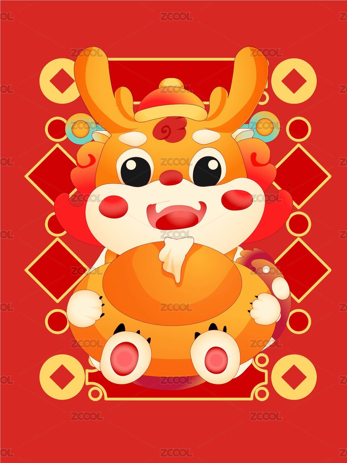 龙年新年春节日进斗金喜庆卡通Q版龙