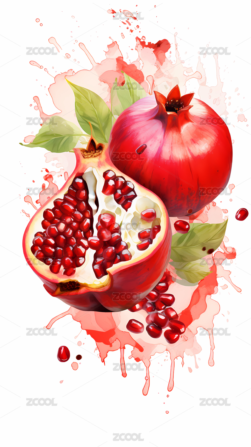 水彩风水果石榴